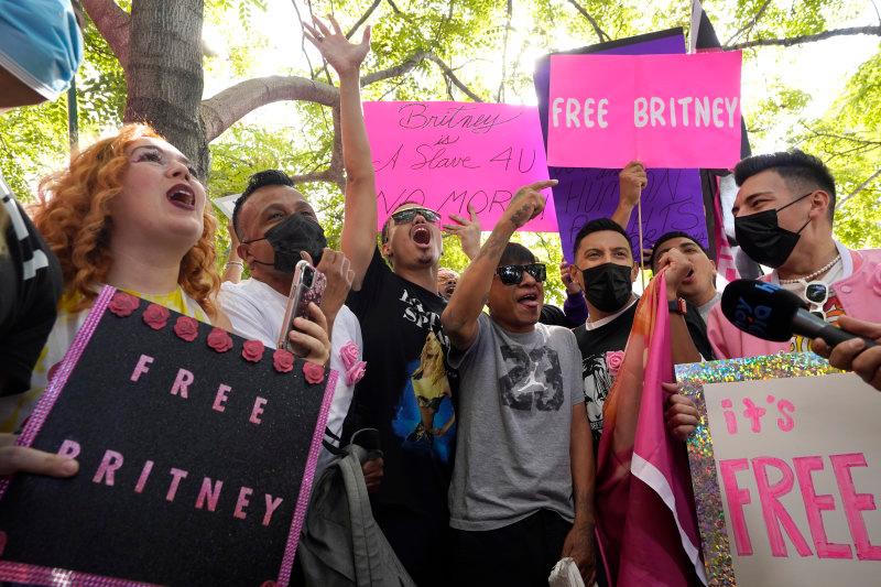 Những người ủng hộ Britney Spears ăn mừng bên ngoài Tòa án Stanley Mosk. sau phán quyết. Ảnh: AP |