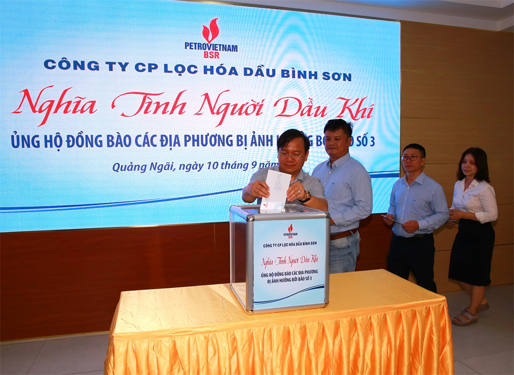 Nhân dịp này, Đảng ủy, Ban lãnh đạo Công ty và các tổ chức đoàn thể BSR đã kêu gọi toàn thể CBCNV bằng tấm lòng nhân ái, sẻ chia, nghĩa tình thực hiện quyên góp, ủng hộ nhân dân các địa phương bị ảnh hưởng, thiệt hại do cơn bão số 3 và hoàn lưu sau cơn bão gây ra.