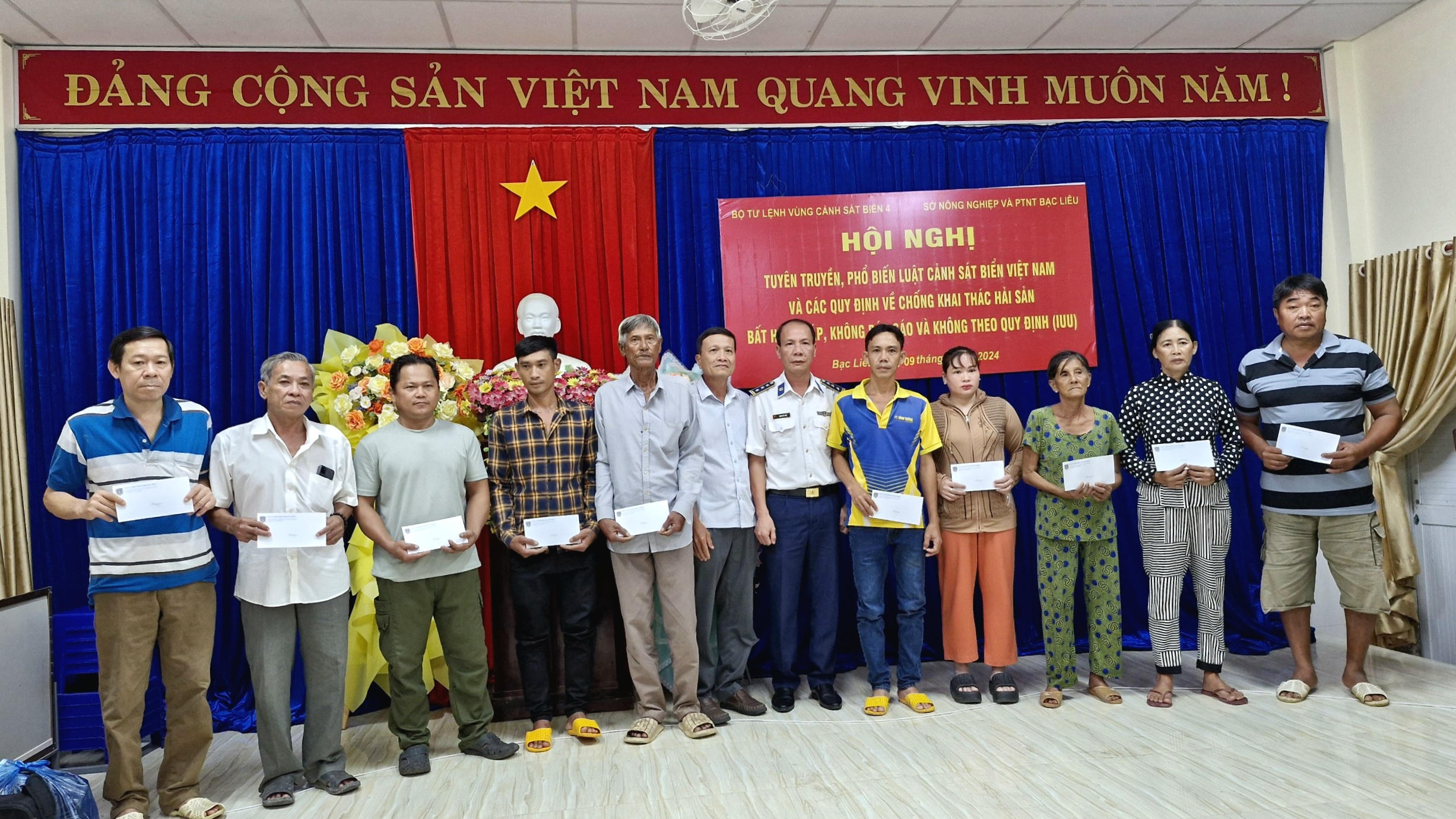Dịp này tại Bạc Liêu, các báo cáo viên, tuyên truyền viên của BTL Vùng Cảnh sát biển 4 đã thông tin đến hơn 350 đại biểu tham dự hội nghị về những nội dung cơ bản của Luật Thủy sản Việt Nam năm 2017, Luật Cảnh sát biển Việt Nam năm 2018 và các văn bản quy định của pháp luật về phòng, chống khai thác hải sản bất hợp pháp, không báo cáo và không theo quy định (IUU)...
