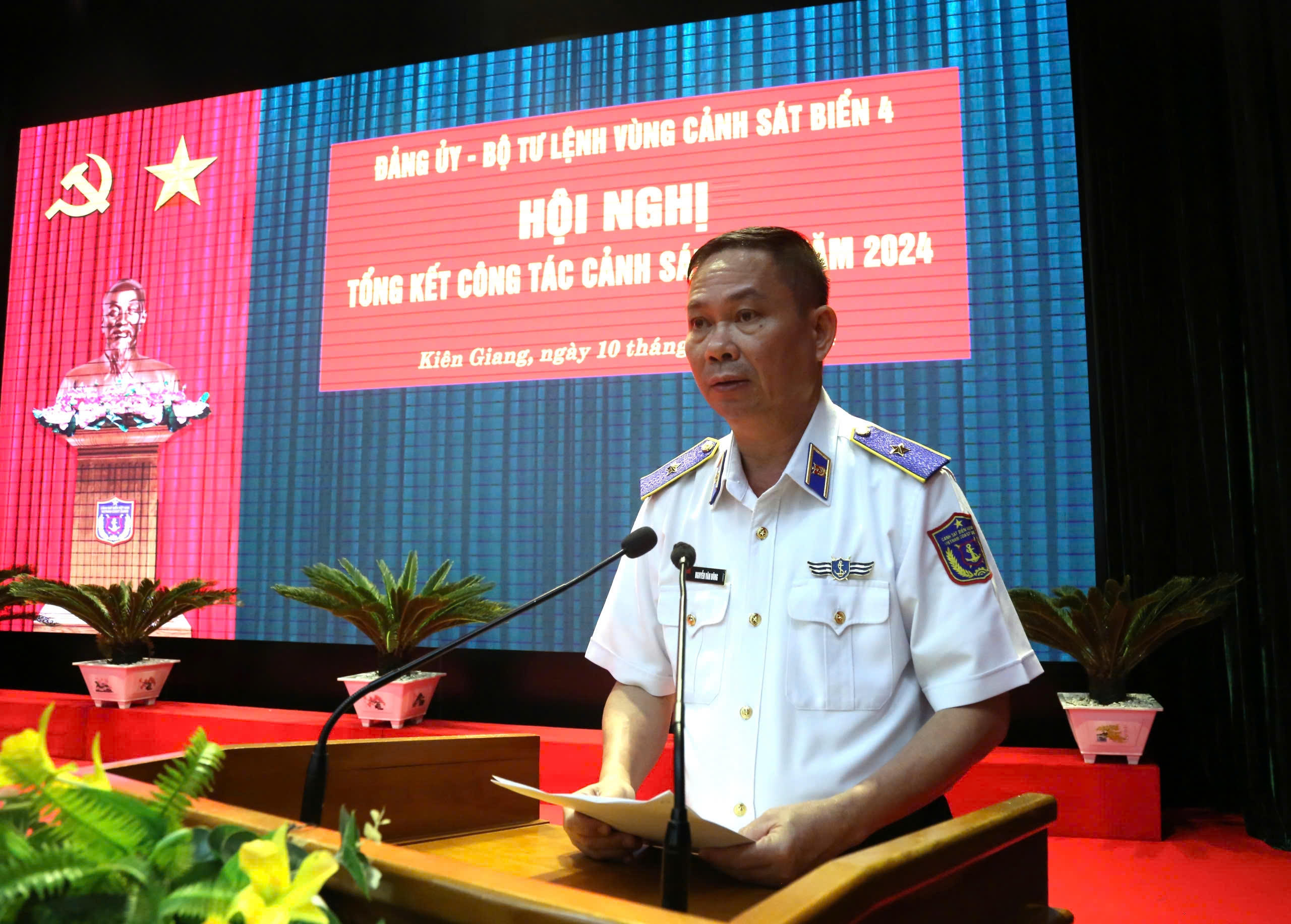 Báo cáo tại Hội nghị cho thấy, năm 2024 mặc dù còn nhiều khó khăn tác động nhưng Đảng ủy, Thủ trưởng BTL Vùng Cảnh sát biển 4 đã lãnh đạo, chỉ đạo đơn vị nỗ lực, quyết tâm vượt qua khó khăn, kiên quyết, triệt để trong triển khai thực hiện nhiệm vụ, hoàn thành tốt mọi nhiệm vụ được giao. Trong đó, có nhiều nhiệm vụ hoàn thành xuất sắc, khẳng định được vai trò nòng cốt trong thực thi pháp luật và bảo vệ an ninh quốc gia, trật tự, an toàn trên vùng biển Tây Nam của Tổ quốc.