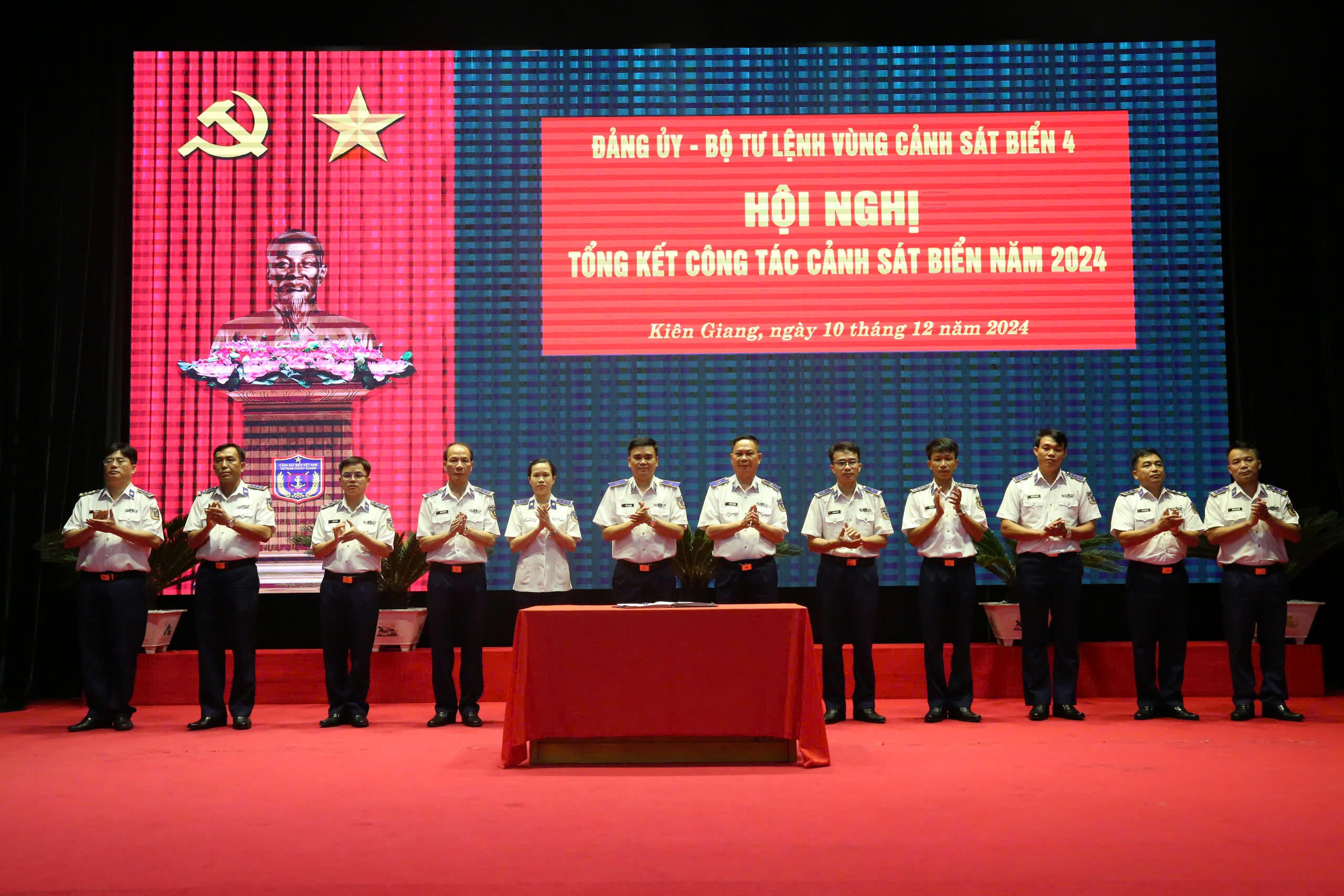 Tại Hội nghị, Đảng ủy - Bộ Tư lệnh Vùng Cảnh sát biển 4 đã tổ chức trao thưởng cho các tập thể, cá nhân có thành tích xuất sắc, tiêu biểu trong phong trào thi đua Quyết thắng năm 2024 và phát động phong trào thi đua Quyết thắng năm 2025 với chủ đề “Dân chủ, đoàn kết, kỷ cương, sáng tạo, quyết thắng”.