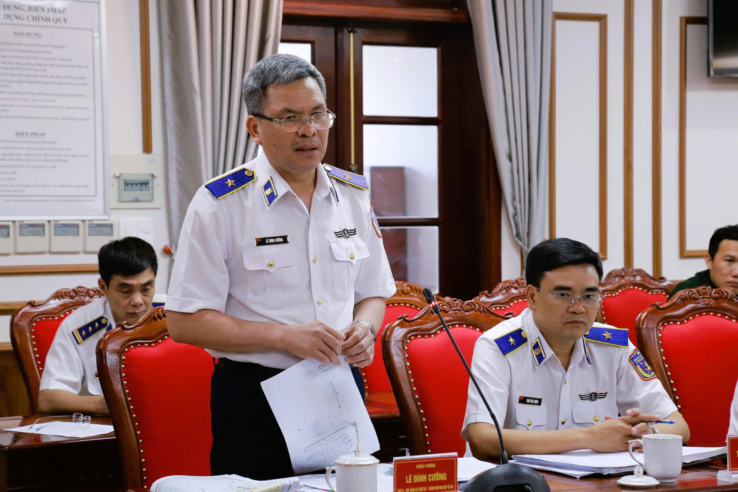 Thiếu tướng Lê Đình Cường – Phó Tư lệnh, Tham mưu trưởng Cảnh sát biển Việt Nam, Trưởng Ban chỉ đạo Cảnh sát biển về IUU phát biểu tại buổi kiểm tra |