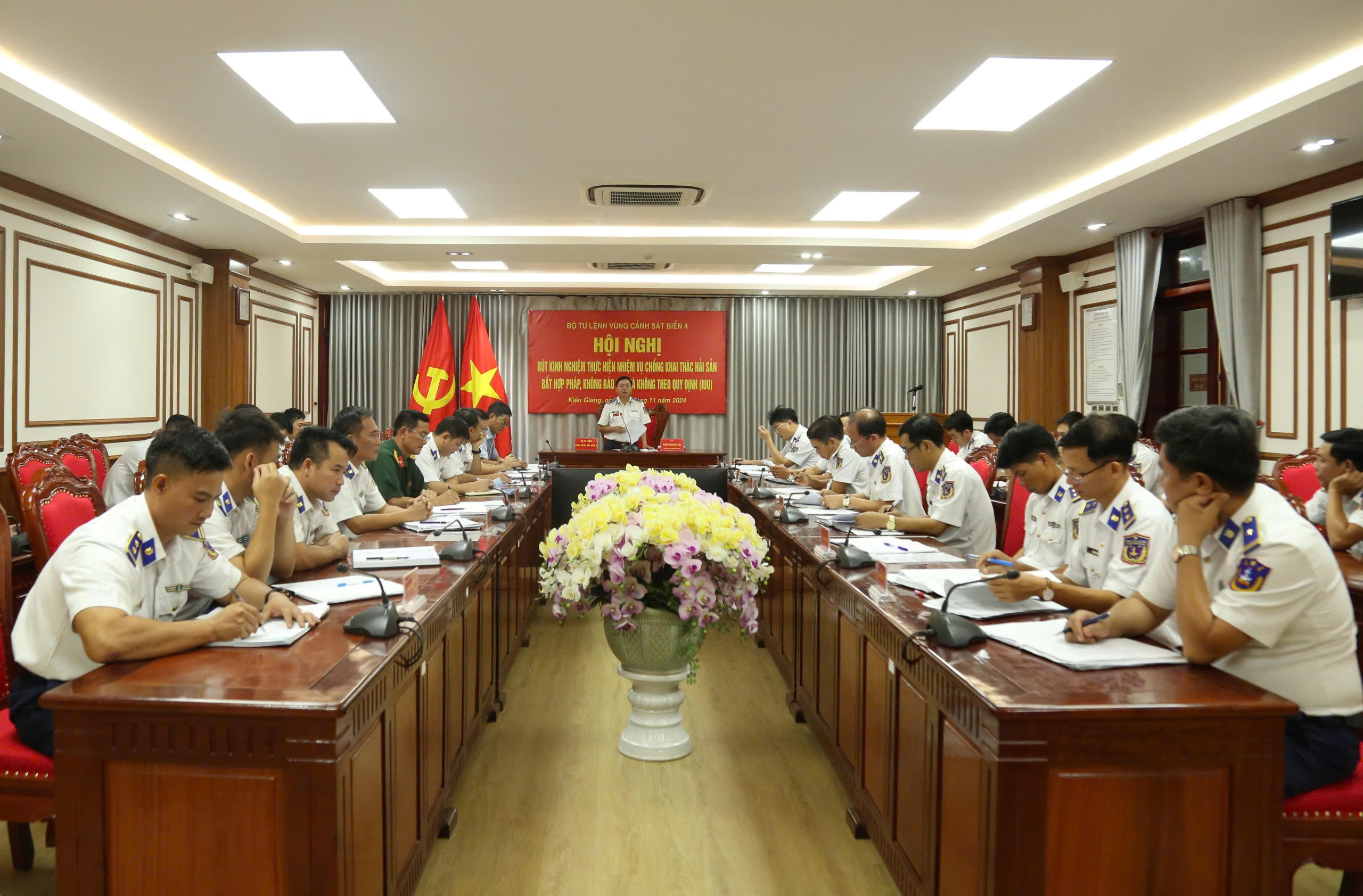 (PLVN) - Bộ Tư lệnh (BTL) Vùng Cảnh sát biển 4 vừa tổ chức Hội nghị rút kinh nghiệm chống khai thác hải sản bất hợp pháp, không báo cáo và không theo quy định (IUU) năm 2024.
