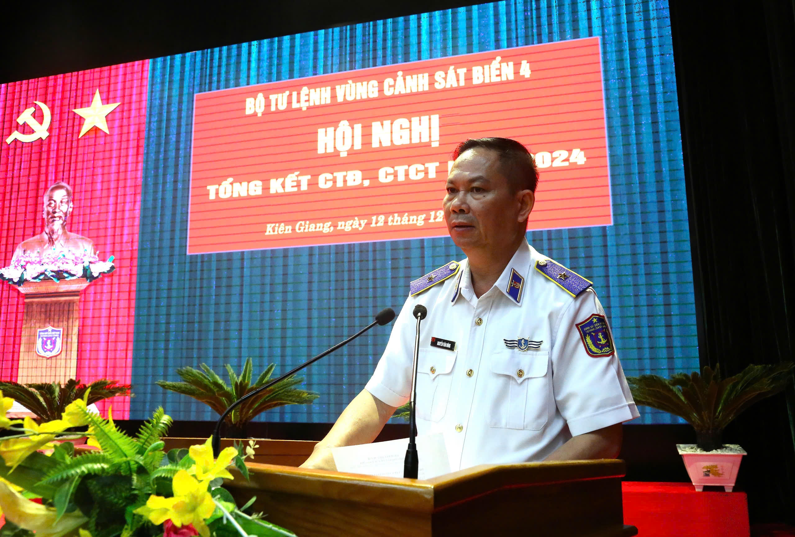 (PLVN) - Ngày 12/12, tại TP Phú Quốc, tỉnh Kiên Giang, Bộ Tư lệnh (BTL) Vùng Cảnh sát biển 4 tổ chức tổng kết công tác Đảng, công tác chính trị (CTĐ, CTCT) năm 2024. Thiếu tướng Nguyễn Văn Dũng - Bí thư Đảng ủy, Chính ủy BTL Vùng chủ trì Hội nghị.