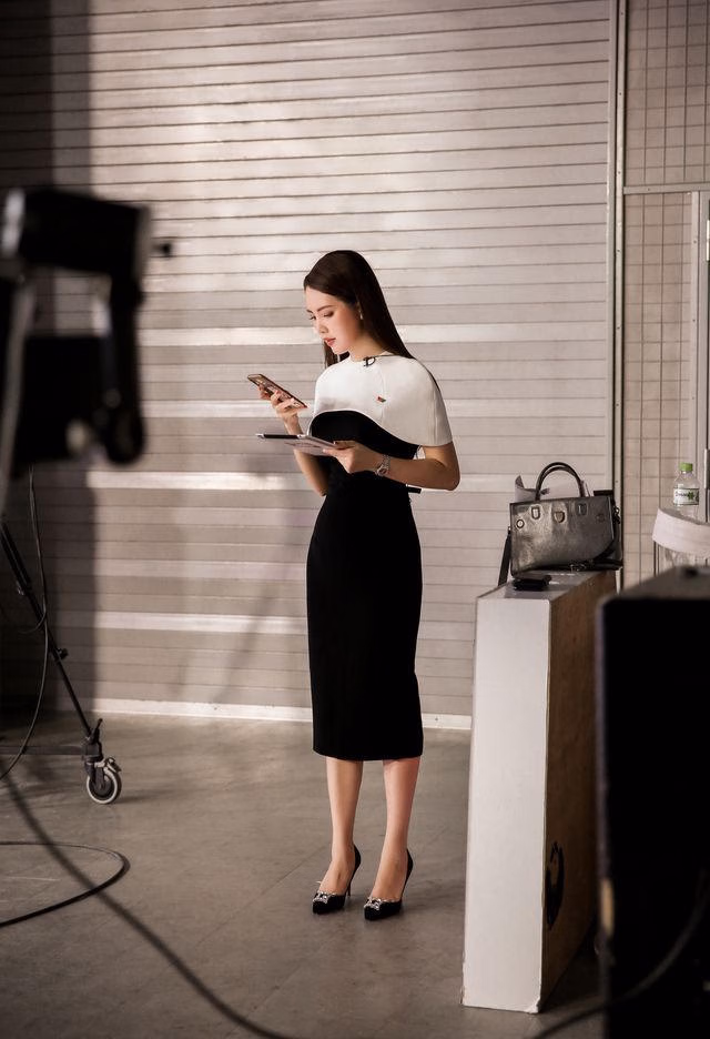 ...hoặc thả tóc dài thẳng mượt để làm toát lên phong thái của phụ nữ tự tin, năng động của thời kỳ công nghệ 4.0. Cô cũng hạn chế sử dụng phụ kiện, chỉ mix hoa tai ngọc trai, đeo đồng hồ và đi giày cao gót mũi nhọn để hoàn thiện phong cách.