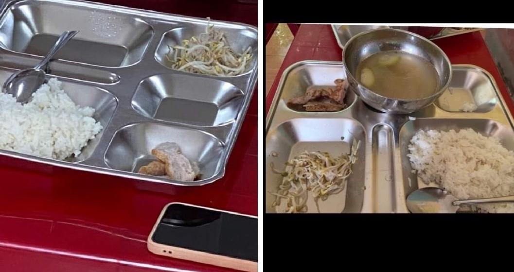 Xuất cơm được đưa lên mạng xã hội chỉ có vài lát chả cá, giá xào và canh bí đao |