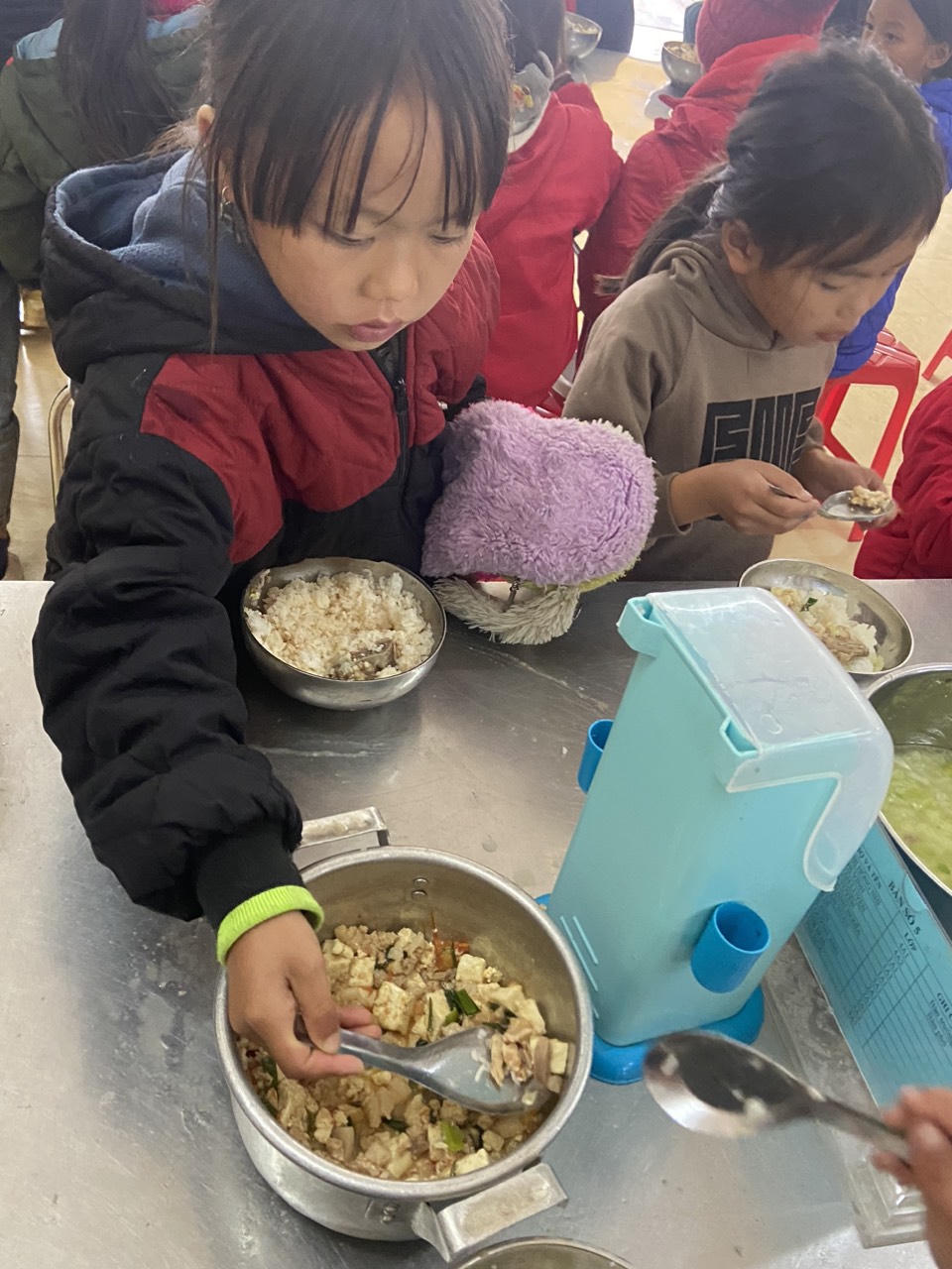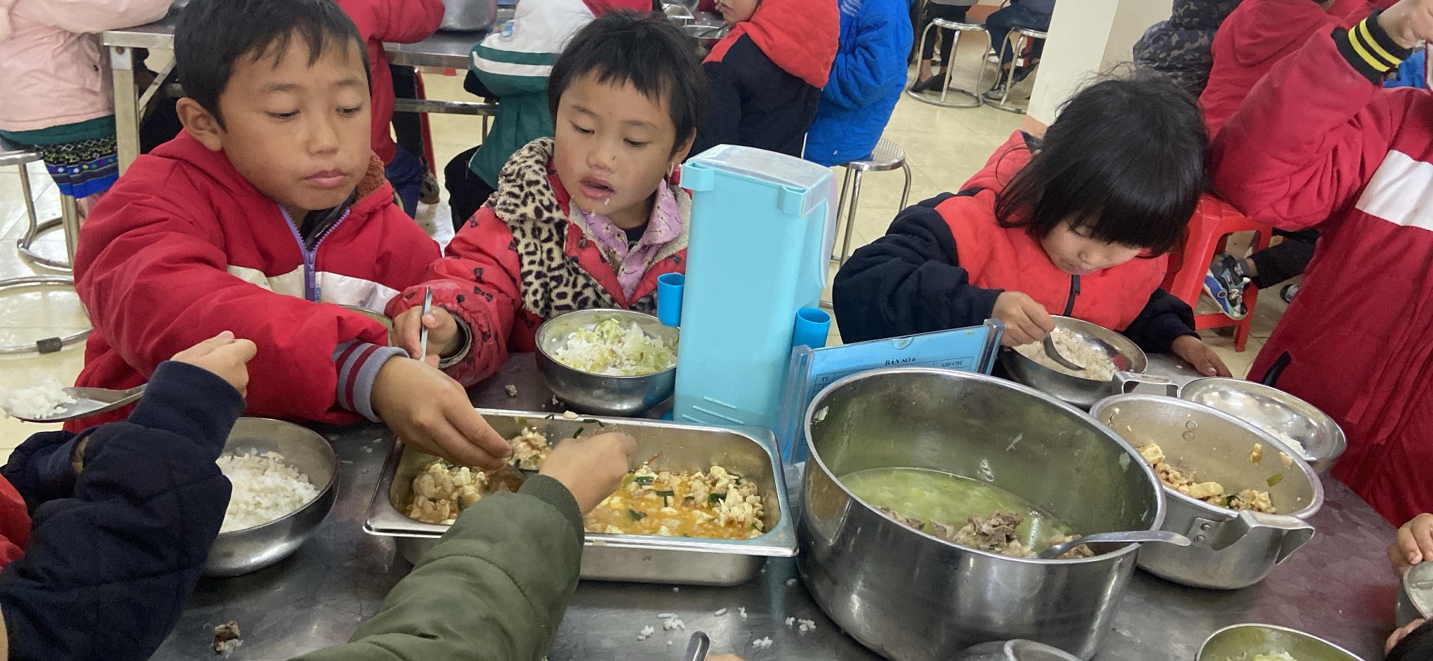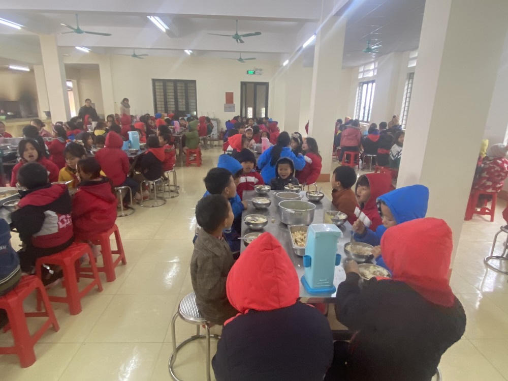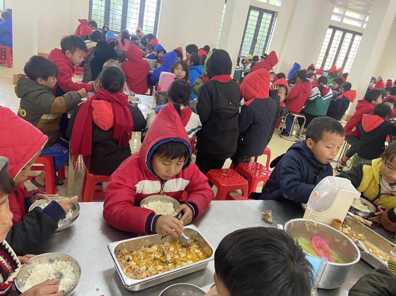 Học sinh Trường PTDTBT Tiểu học Hoàng Thu Phố 1 vui vẻ ăn trưa 20/12/2023