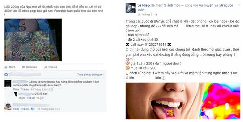 Bằng chứng là việc rao bán LSD trên mạng xã hội diễn ra công khai, đi kèm đó là những lời quảng cáo gây kích thích cho người nghe, đặc biệt là những người trước đó đã sử dụng chất kích thích. Ví dụ như: “Chơi một lần nhớ mãi” hay “Bùa lưỡi, đánh thức mọi giác quan”. Giá của một tem giấy trên facebook Lê Hiệp là 250 nghìn đồng/ tem, nếu mua nhiều từ 10 cái thì sẽ chỉ còn có giá là 200 nghìn đồng/tem.