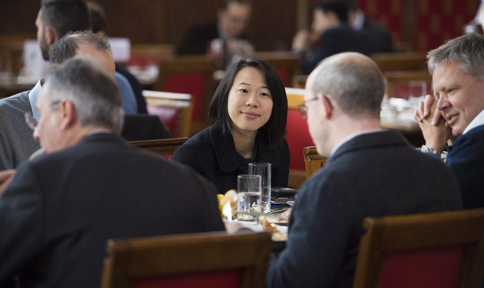 Trạng sư Cecilia Xu Lindsey phải nhắc lại chương trình công tác của Đoàn với 9 Stone Buildings Barristers’ Chamber cho người quản lý nhà hàng của Đại lễ đường trước khi chúng tôi được niềm nở phục vụ bữa trưa khá đặc biệt này.
