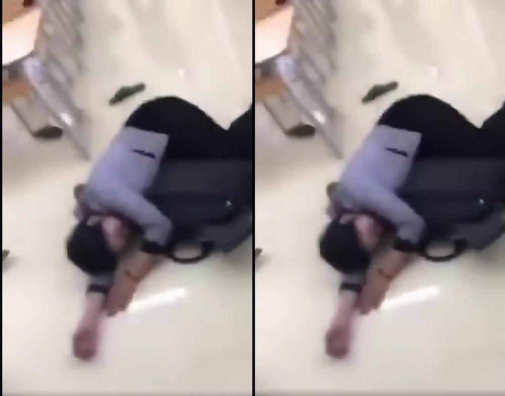 Trong hỗn loạn, cô giáo bị ném dép vào người. Khi giáo viên cầm dép lên hỏi ai đã ném cô thì không ai trả lời. Sau đó, một chiếc dép ném trúng vào đầu giáo viên, vài giây sau cô ngã xuống sàn nhà. Lúc này các học sinh xung quanh mới bỏ chạy... Suốt clip này, nữ giáo viên chỉ im lặng và không có nhiều hành động phản kháng.