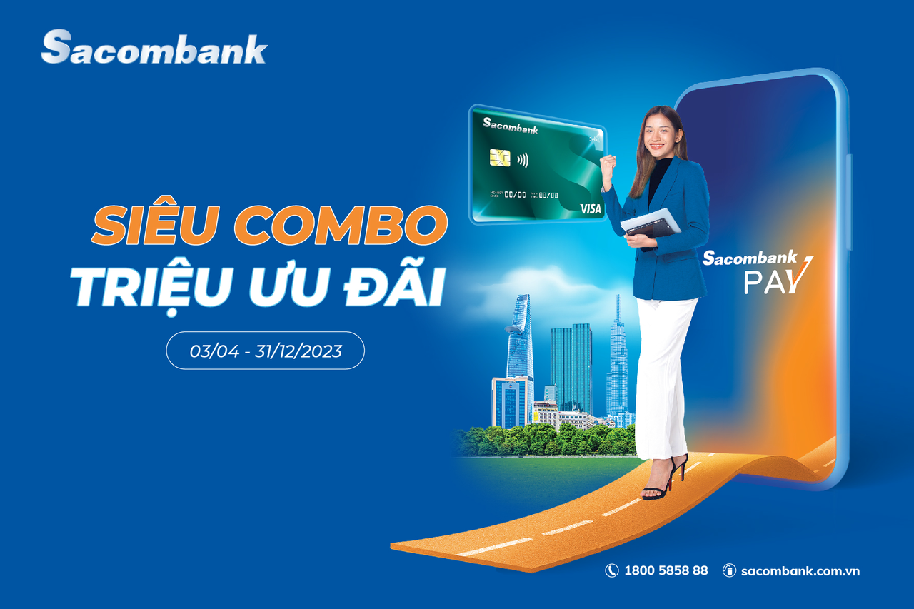 (PLVN) - Từ ngày 03/4/2023 đến hết ngày 31/12/2023, Sacombank triển khai chương trình “Siêu Combo - Triệu ưu đãi” dành cho khách hàng cá nhân đăng ký trọn gói Combo với nhiều sản phẩm dịch vụ như: tài khoản/thẻ thanh toán, Sacombank Pay, eBanking... tổng giá trị ưu đãi lên đến hơn 29 tỷ đồng.