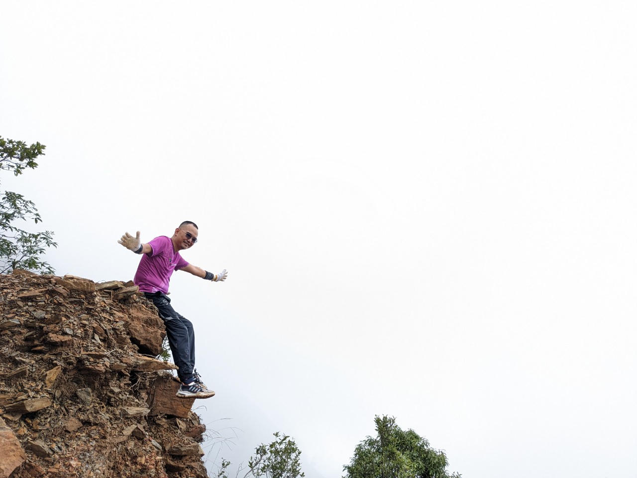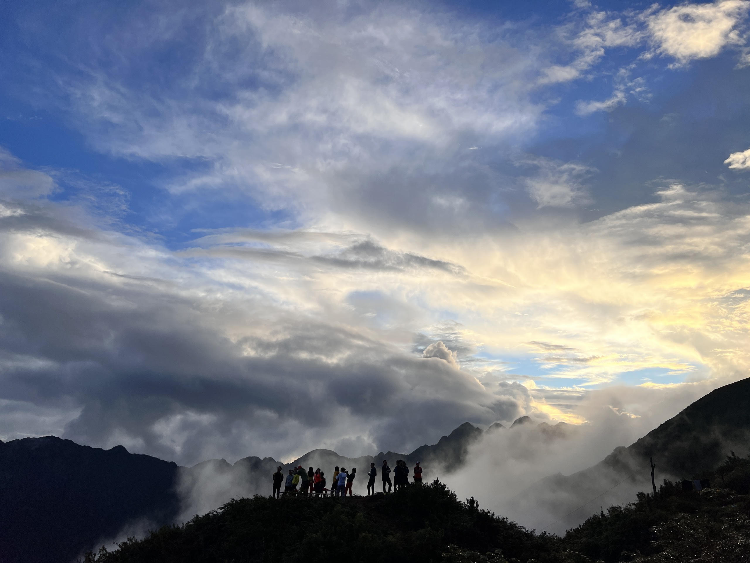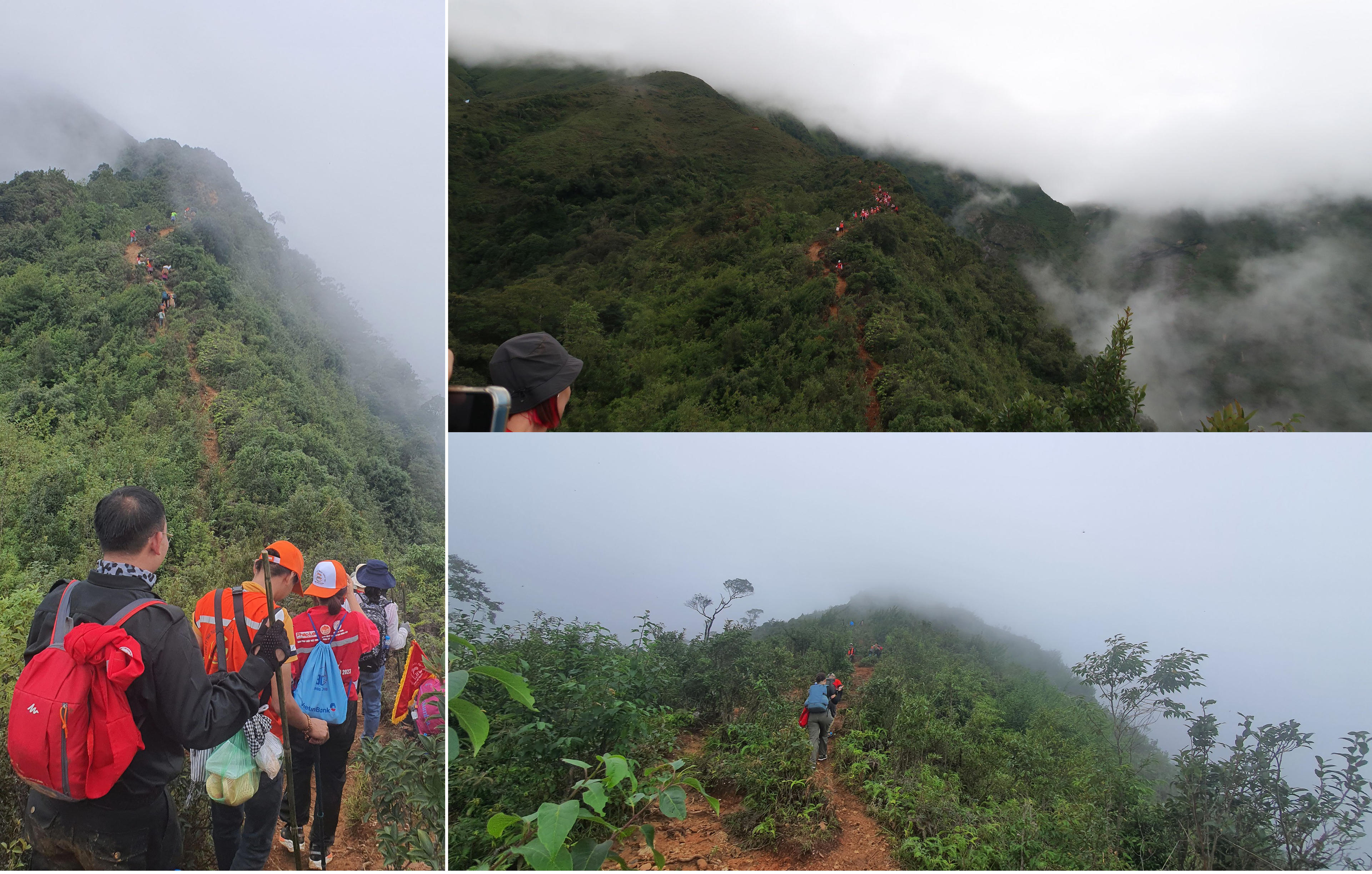 Càng lên cao, mức độ nguy hiểm càng lớn. Cung đường gần tới đỉnh núi được ví như sống lưng khủng long gió lộng, hai bên đều là vực sâu hun hút, chỉ có một lối mòn vài chục cm ở giữa. Khi nhóm gần cuối cùng của chúng tôi lên đến điểm cách đỉnh núi 1,5km, trời đã về chiều, khung cảnh rất liêu trai với những triền núi toàn đá nhọn, và những gốc cây là tàn tích của vụ cháy rừng để lại. Đâu đó, tiếng dê con nhớ bầy như tiếng trẻ con khóc, khiến các nữ nhà báo đang có con nhỏ chợt trùng chân…