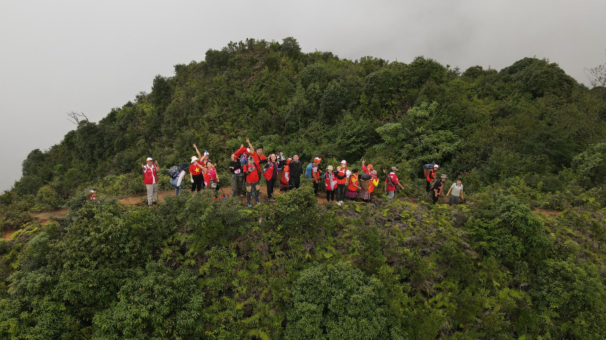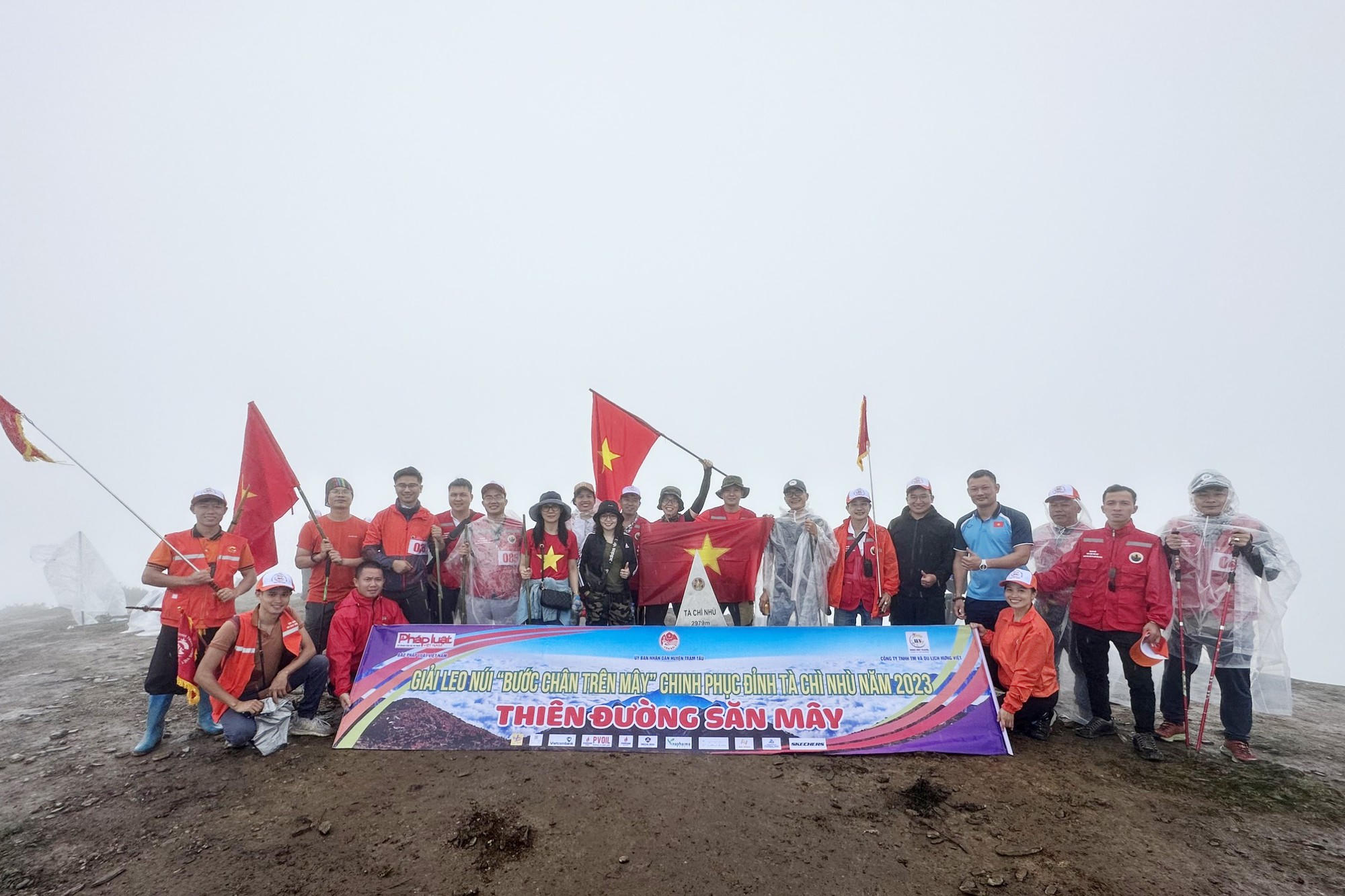 Niềm vui của các nhà báo khi chinh phục đỉnh Tà Chì Nhù. (Ảnh: Ban Tổ chức giải leo núi). |