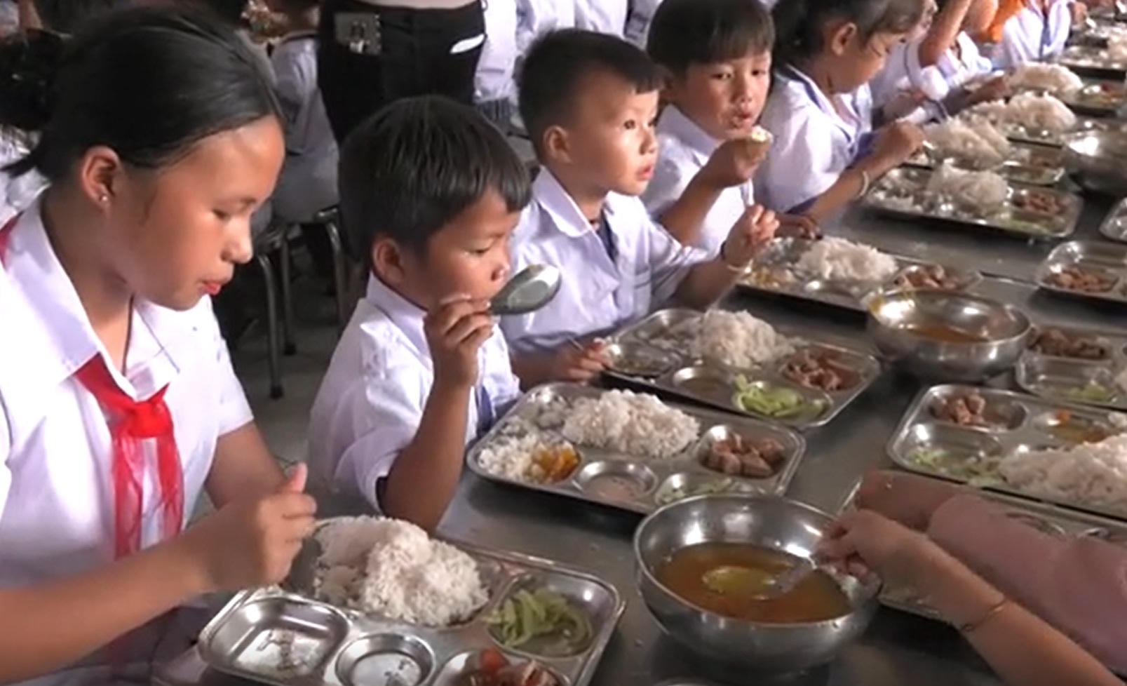 Đến nay, bữa ăn trưa của các em đã có đủ 4 món: mặn, xào, canh, cơm đảm bảo đủ chất, giúp trẻ ngon miệng. Cùng với chăm lo phát triển thể chất, các em học sinh được học đủ 2 buổi/ngày.
