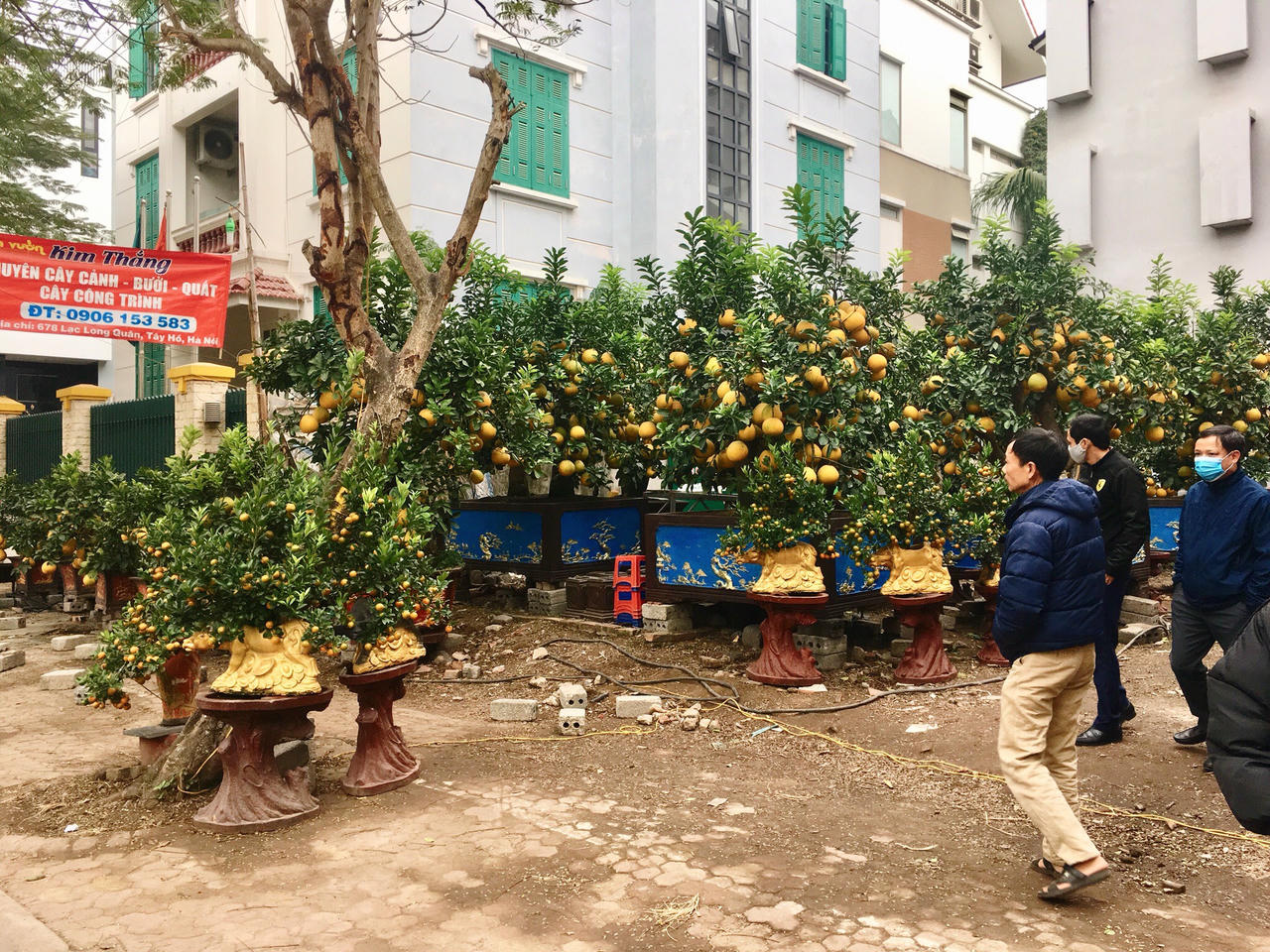 Chủ vườn Kim Thắng (Hoài Đức, Hà Nội) hiện đang bày bán hàng chục chậu bưởi diễn cảnh và quất bon sai trên đường Lạng Long Quân (quận Tây Hồ, Hà Nội) cho biết, nhiều khách quen đã tới xem và đặt trước bưởi cảnh của nhà vườn để về trưng bày chơi Tết Nguyên đán 2021.