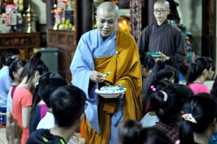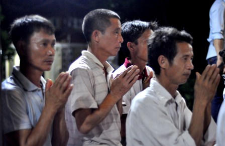 | Được sự chỉ dẫn của các sư thầy chùa Đình Quán, buổi lễ cầu an được tổ chức trong sự trang nghiêm vào buổi tối hôm trước khi các sỹ tử bước vào phòng thi. |