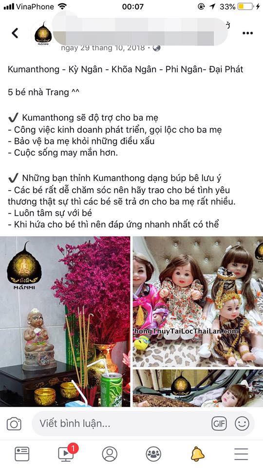 Búp bê Thái Lan Kumathong rao bán tràn lan trên mạng xã hội