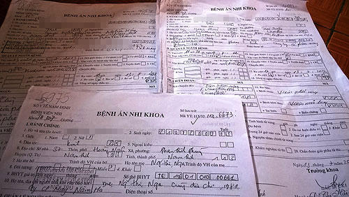 Chị Trần Thị Th., mẹ cháu H., khẳng định: “Con tôi nhập viện, bác sĩ vừa tiến hành truyền dịch đã tử vong, chưa kịp thực hiện xét nghiệm, chẩn đoán nào, nhưng trong hồ sơ bệnh án có hàng loạt các phiếu xét nghiệm”. Tại bệnh án 4002 của cháu Cao Thị Thúy Ng. còn đính lẫn phiếu nội soi của một cháu khác tên Ngô Đức M. (2 tuổi) có địa chỉ viết chung chung “NĐ”.