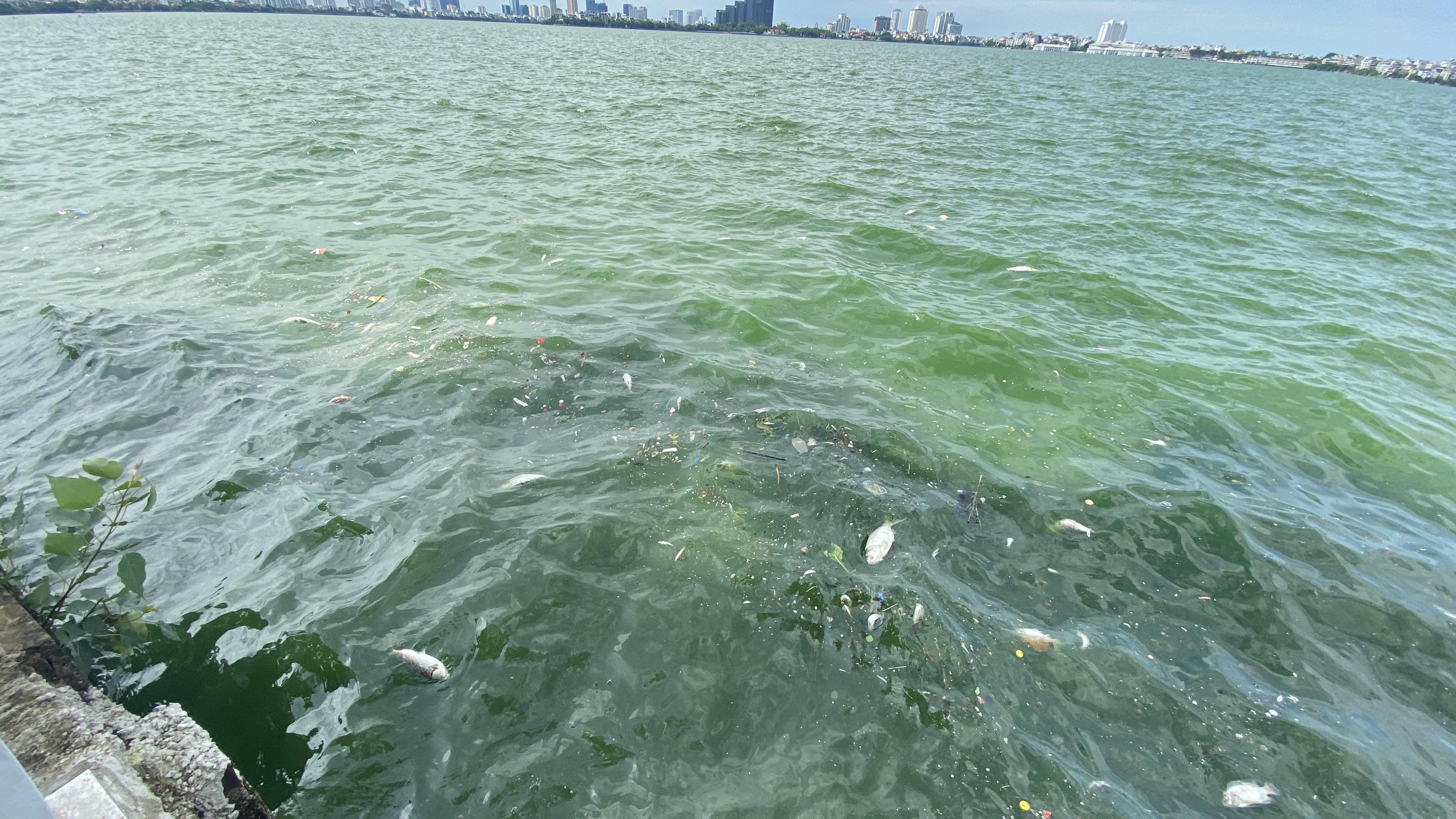 Anh Đặng Đức Lâm, bảo vệ của một quán cafe trên đường Nguyễn Đình Thi chia sẻ: "Tôi mới làm việc ở đây khoảng gần 1 tuần nay, thì cũng chừng ấy thời gian tôi thấy cá chết. Những ngày nắng không có gió, cá chết dạt vào bờ bốc mùi hôi thối nồng nặc. Điều này làm ảnh hưởng rất lớn đến quán, khách đến quán thưa hơn và cũng phàn nàn nhiều với chúng tôi về mùi hôi do cá chết ở hồ".