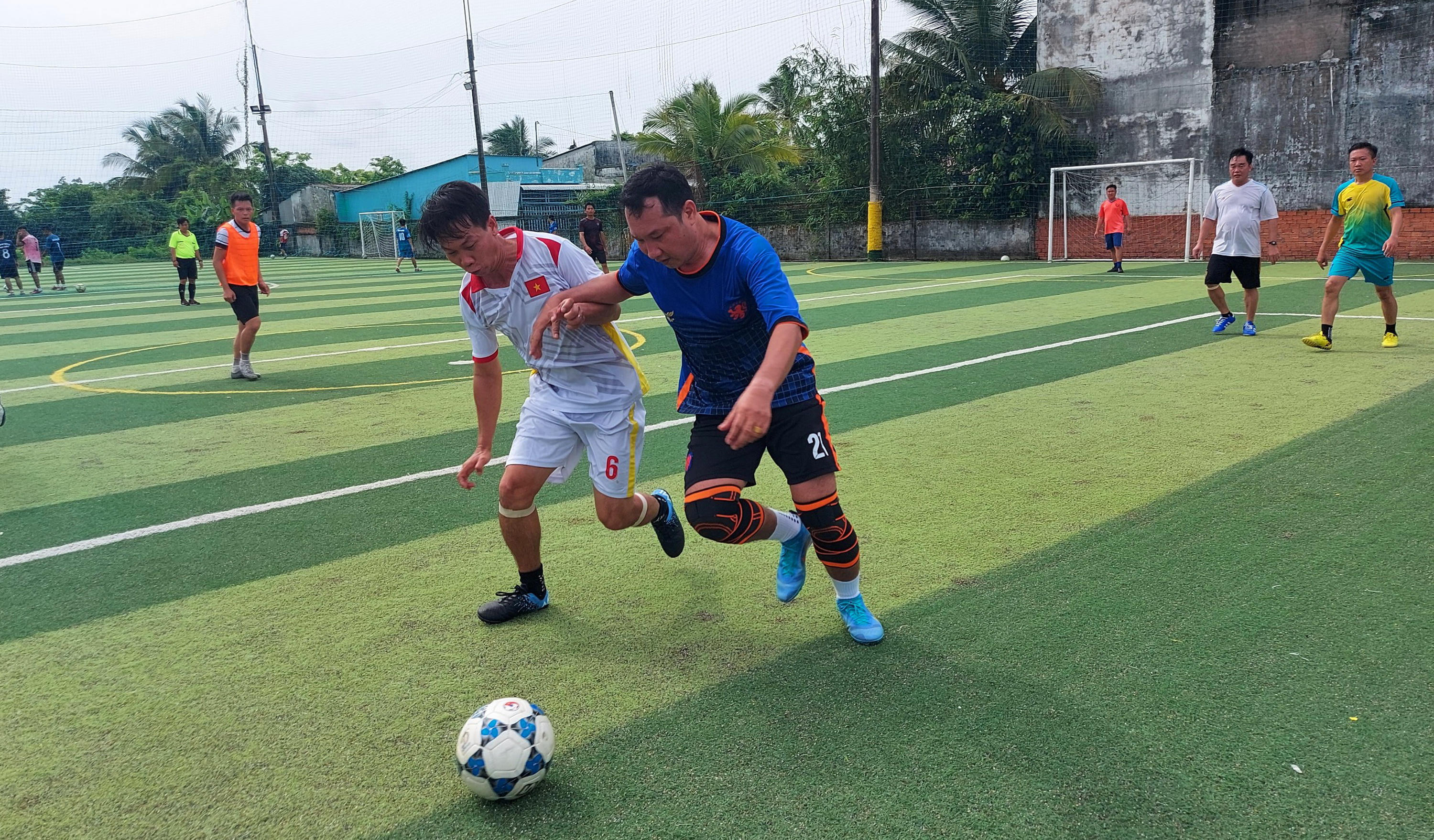 Đội các cơ quan thông tấn báo chí Bạc Liêu (áo xanh) quyết liệt với các đội bạn để giành chức vô địch. |