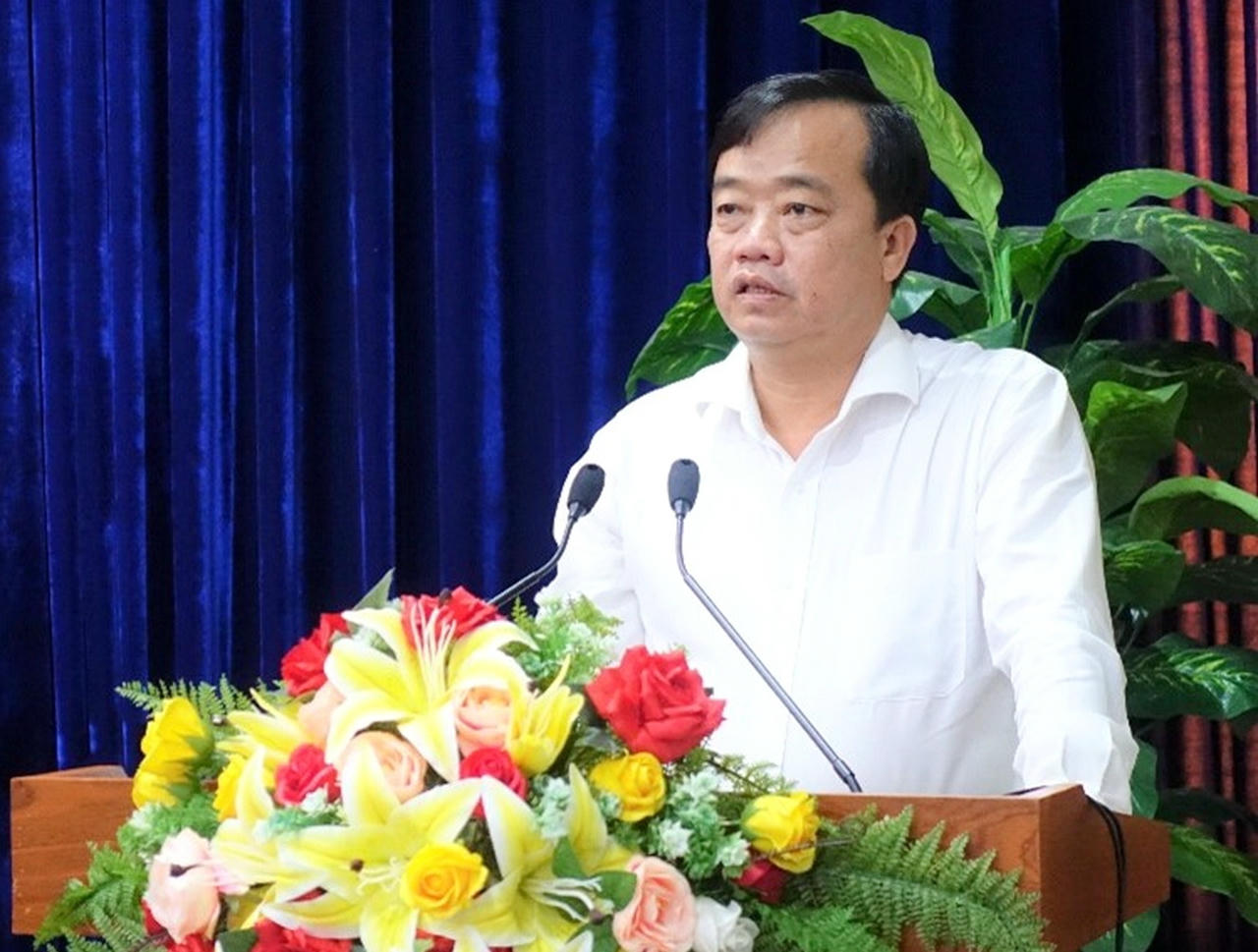 Ông Huỳnh Quốc Việt - Ủy viên dự khuyết Ban Chấp hành Trung ương Đảng, Phó Bí thư Tỉnh ủy, Chủ tịch UBND tỉnh Cà Mau phát biểu Kết luận Hội nghị. |