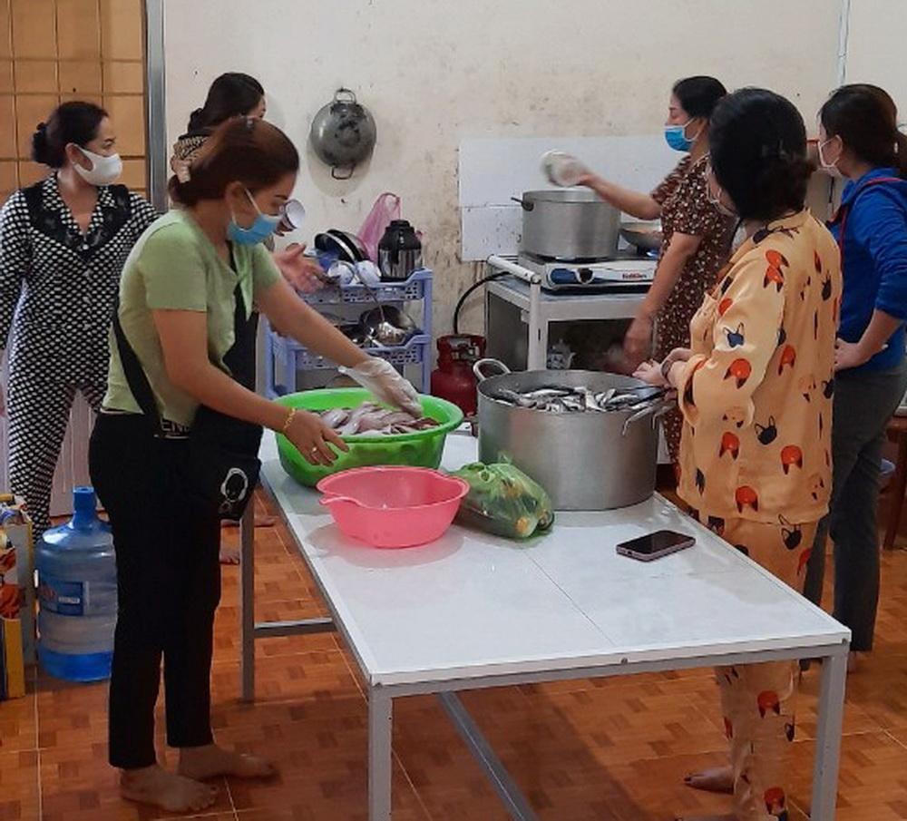 Chị em Phụ nữ ở thị trấn Rạch Gốc (huyện Ngọc Hiển) chế biến thực phẩm hỗ trợ người dân ở TP Hồ Chí Minh. |