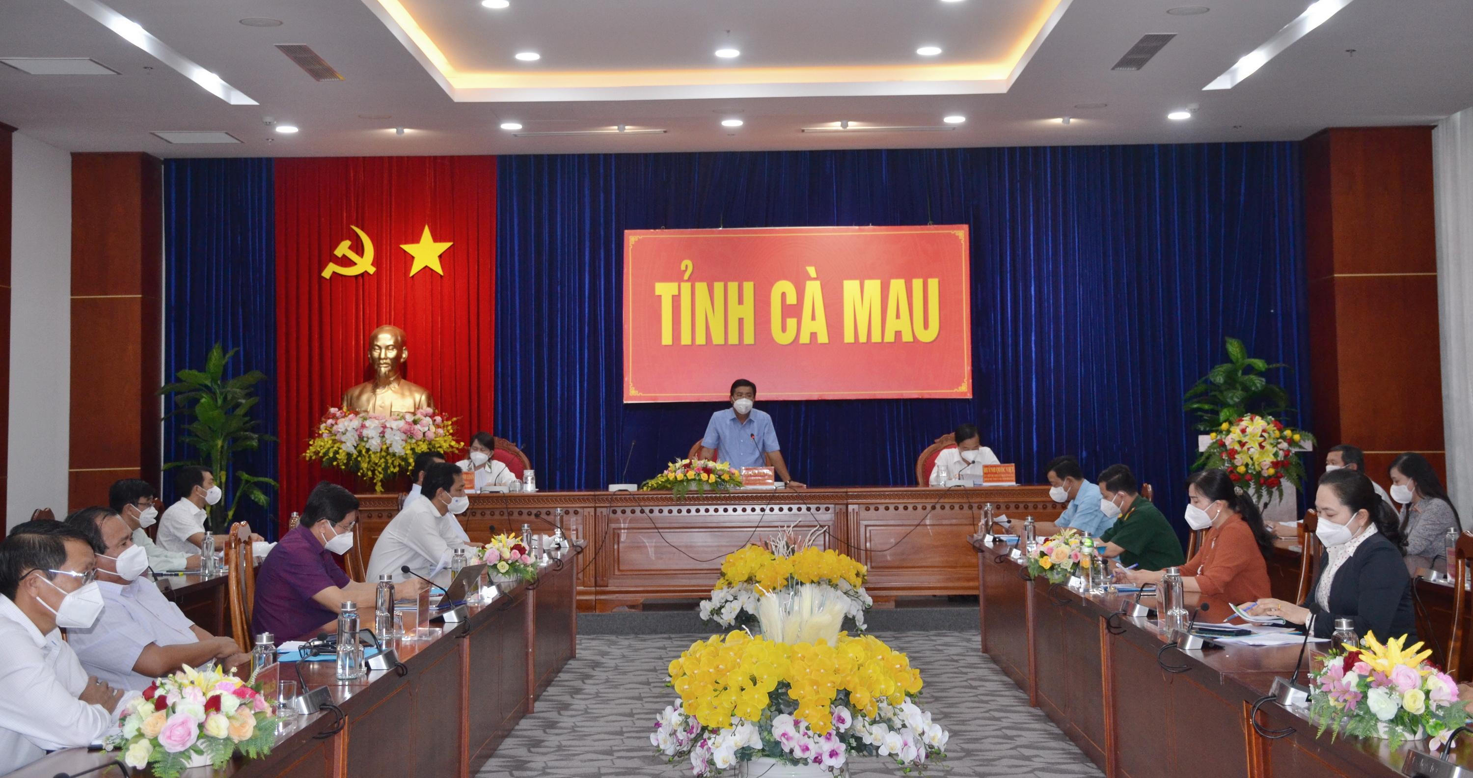 Bí thư Tỉnh uỷ, Trưởng Ban Chỉ đạo phòng, chống dịch COVID-19 tỉnh Nguyễn Tiến Hải chỉ đạo Hội nghị sơ kết Ban Chỉ đạo về công tác phòng, chống dịch COVID-19 tỉnh Cà Mau chiều 16/9. |