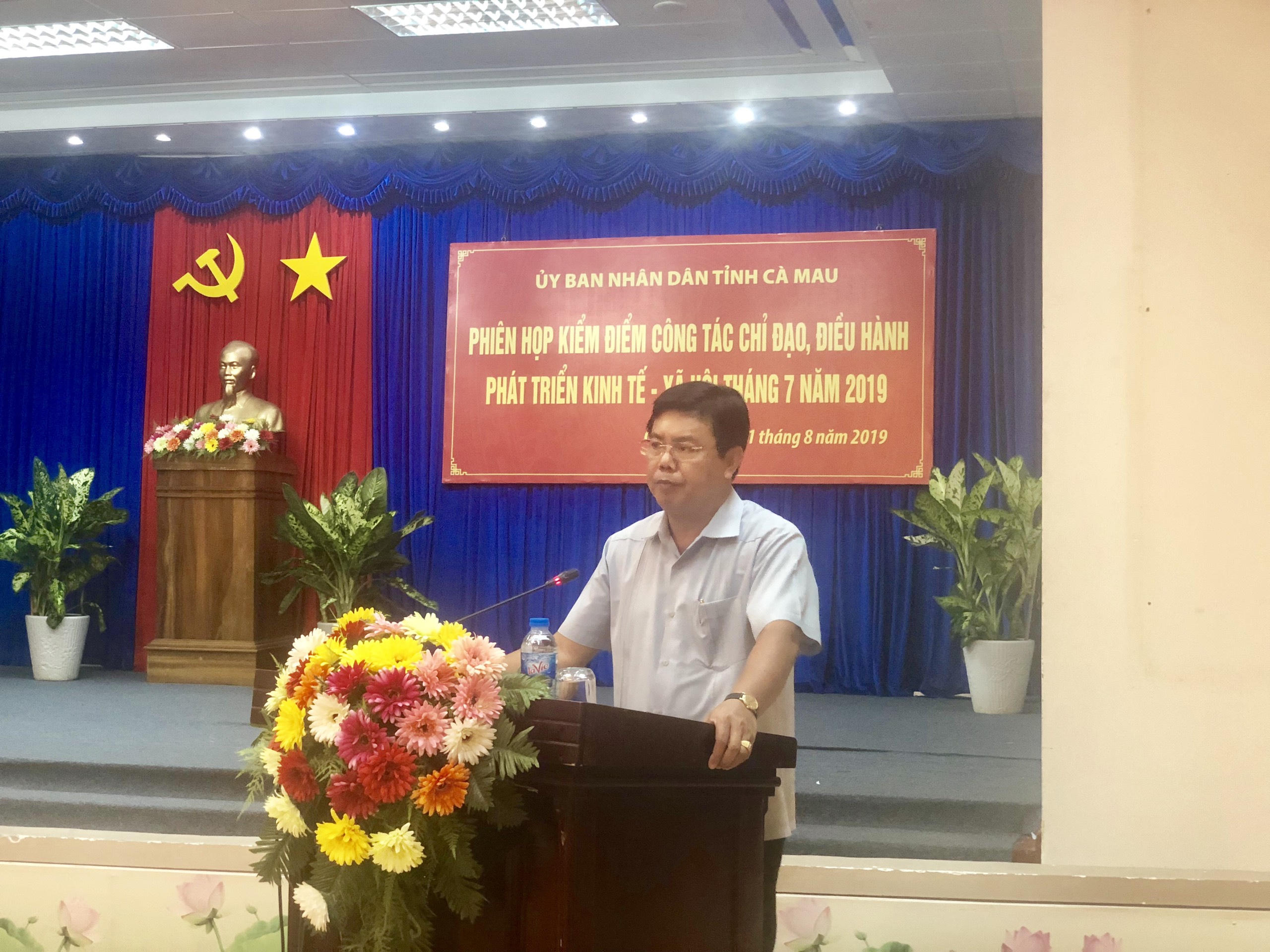(PLVN) - Chiều 1/8, Văn phòng UBND tỉnh Cà Mau chủ trì, phối hợp với sở, ngành, địa phương, đơn vị liên quan tổ chức hội nghị Báo cáo công tác chỉ đạo, điều hành thực hiện nhiệm vụ phát triển KT-XH tháng 7, 7 tháng đầu năm và Chương trình công tác tháng 8 năm 2019; Báo cáo kết quả thực hiện công tác cải cách hành chính tháng 7 trên địa bàn tỉnh. Ông Nguyễn Tiến Hải - Chủ tịch UBND tỉnh Cà Mau dự và phát biểu chỉ đạo.