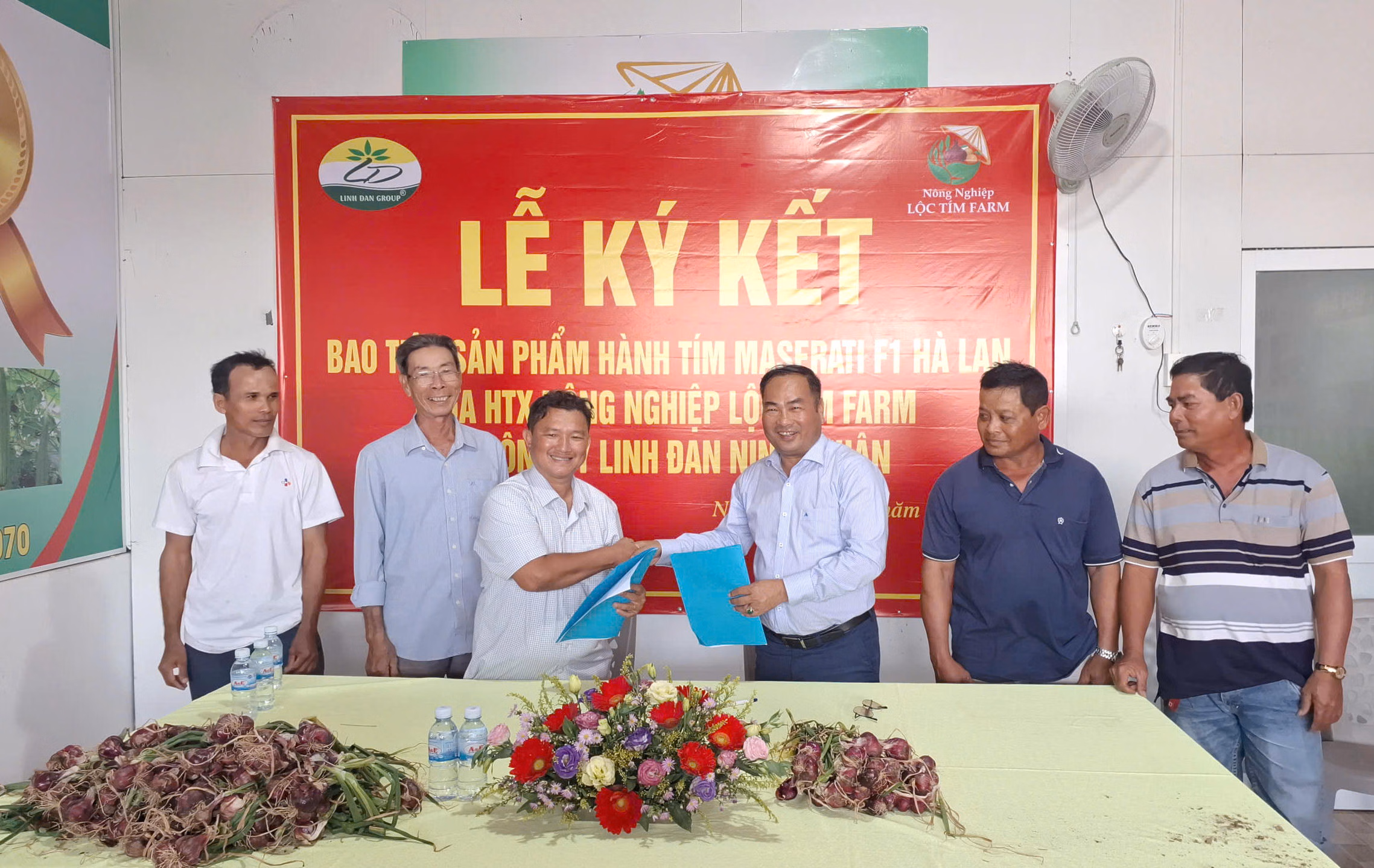 Trước đó, HTX Nông nghiệp Lộc Tím Farm đã ký kết hợp đồng cung cấp giống và bao tiêu sản phẩm hành tím Maserati F1 Hà Lan với Công ty TNHH Linh Đan Ninh Thuận. Doanh nghiệp cam kết thu mua toàn bộ sản lượng đạt tiêu chuẩn, hỗ trợ kỹ thuật và thanh toán linh hoạt, góp phần hình thành chuỗi liên kết bền vững.