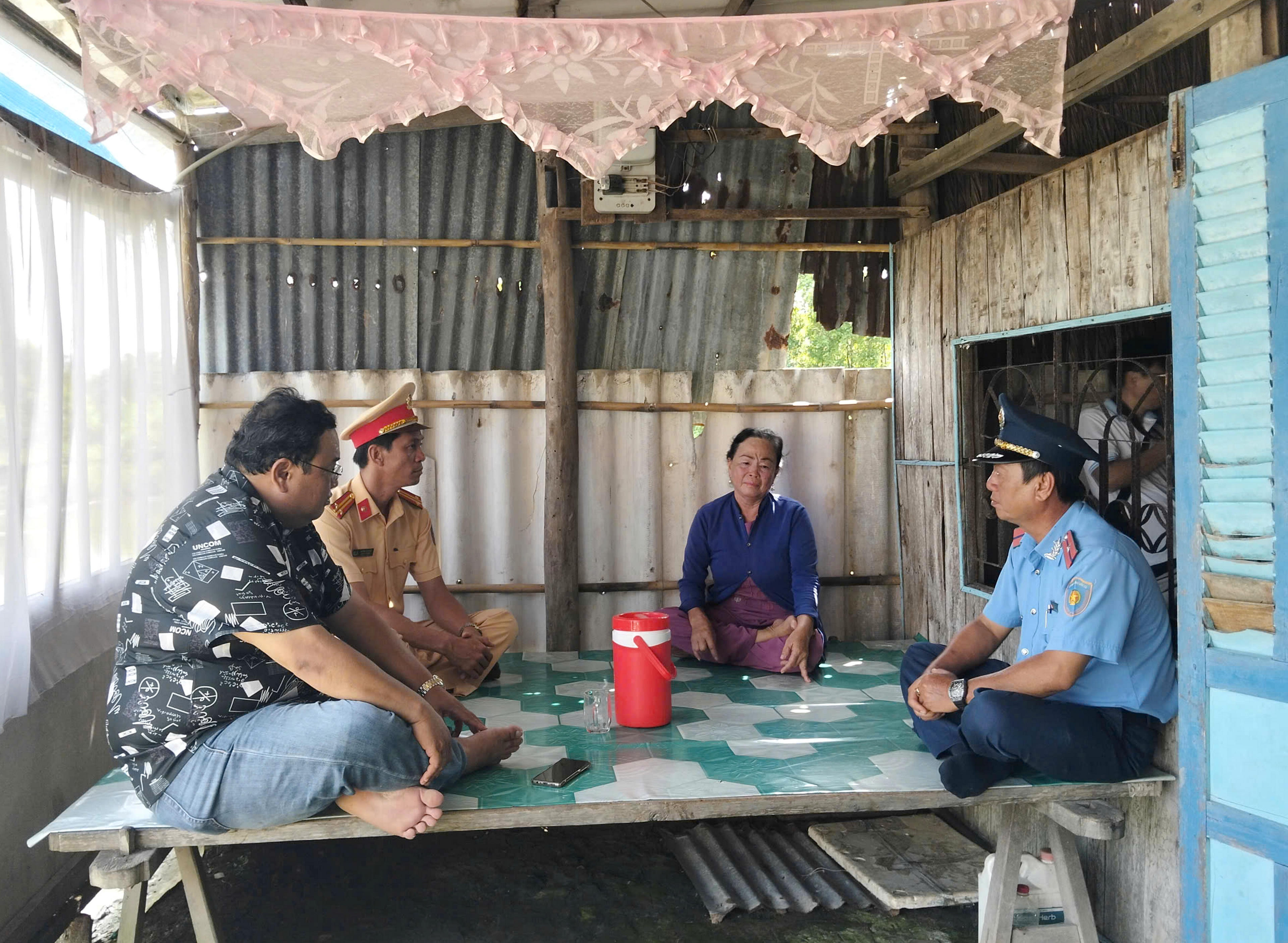 Tiếp đến, đoàn tới thăm gia đình ông Lê Văn Sả (SN 1964, ấp Tân Phú, xã Tân Hưng Đông, huyện Cái Nước). Ông Sả tai nạn giao thông đường thủy cách nay 8 năm, chấn thương nặng nên tử vong tại bệnh viện sau tai nạn vài ngày. Sau khi ông mất, vợ ông là bà Nguyễn Thị Hiền sống với người con trai, ít đất sản xuất, nhà nền đất, cột cây, vách lá, rất cần được hỗ trợ.