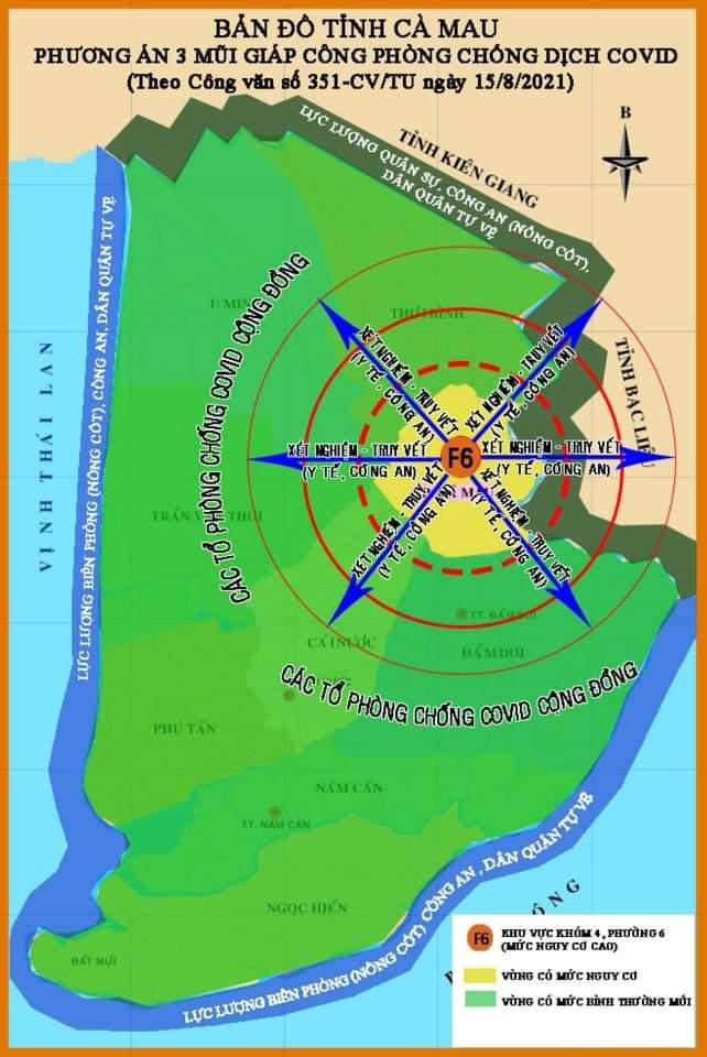 Bản đồ Phương án "Ba mũi giáp công chống dịch COVID-19” tỉnh Cà Mau. |