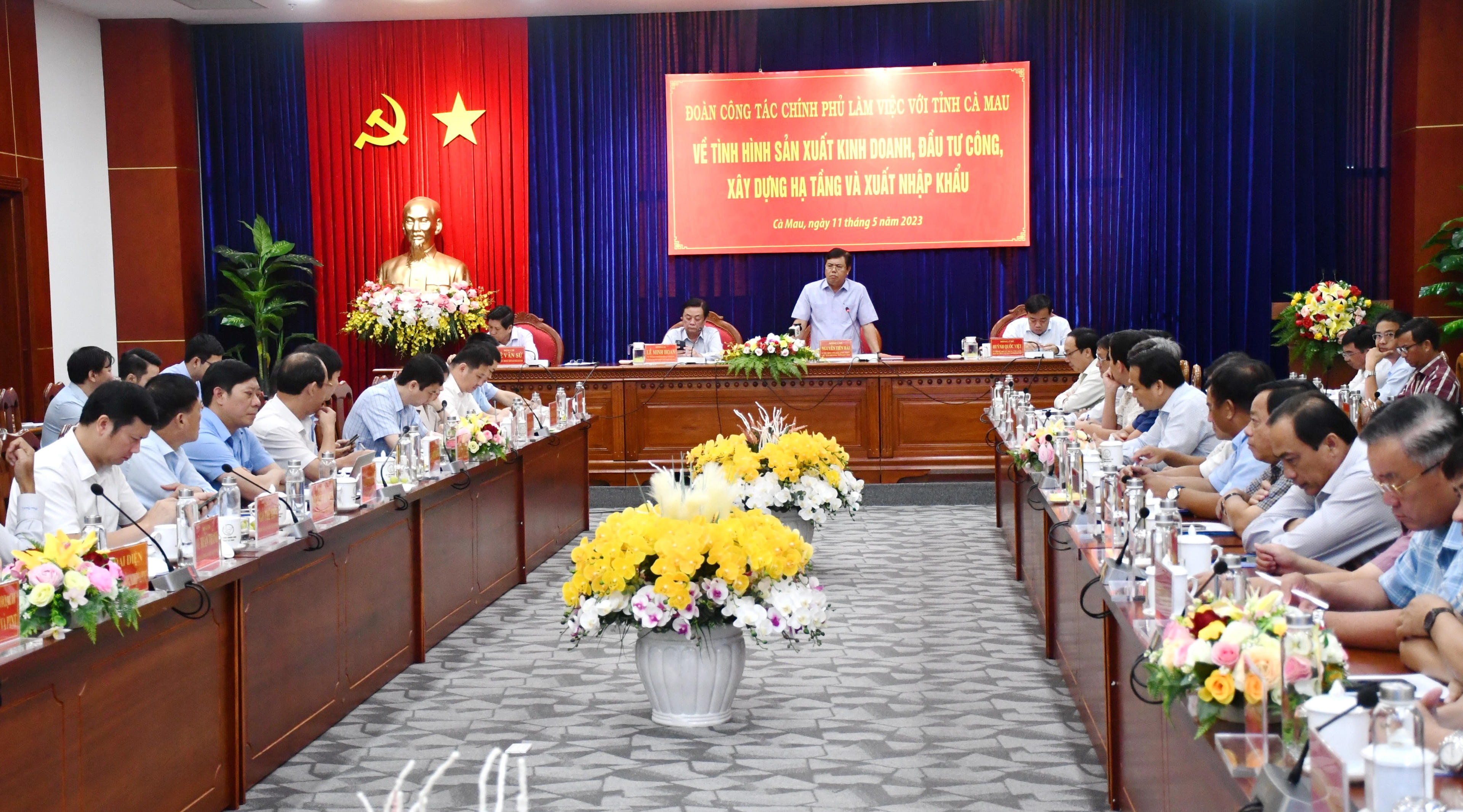 Ông Nguyễn Tiến Hải – Uỷ viên BCH TW Đảng, Bí thư Tỉnh ủy, Chủ tịch HĐND tỉnh Cà Mau, phát biểu tại buổi làm việc. |
