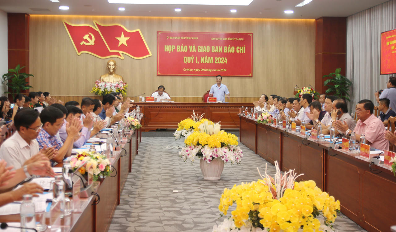 (PLVN) - Nhằm kịp thời cung cung cấp thông tin cho báo chí, chiều 9/4, ông Hồ Trung Việt - Ủy viên BTV Tỉnh ủy, Trưởng Ban Tuyên giáo Tỉnh ủy Cà Mau; ông Nguyễn Minh Luân - Tỉnh ủy viên, Phó Chủ tịch UBND tỉnh Cà Mau chủ trì buổi họp báo và giao ban báo chí quý I/2024.