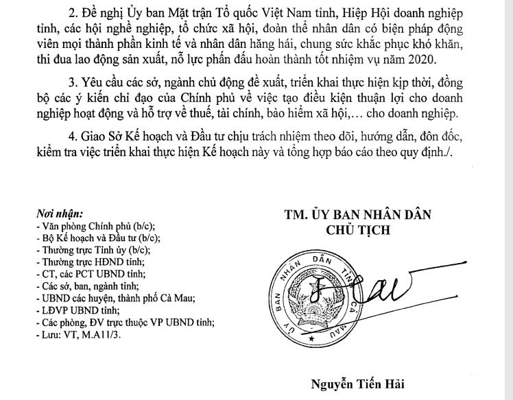 Theo đó, Phó Bí thư Tỉnh ủy, Chủ tịch UBND tỉnh Cà Mau Nguyễn Tiến Hải đã chỉ đạo các Sở, ban, ngành tỉnh và UBND các huyện, thành phố Cà Mau cần tăng cường kỷ luật, kỷ cương hành chính, nâng cao vai trò, trách nhiệm của người đứng đầu trong việc tổ chức triển khai thực hiện kế hoạch phòng, chống Covid-19.
