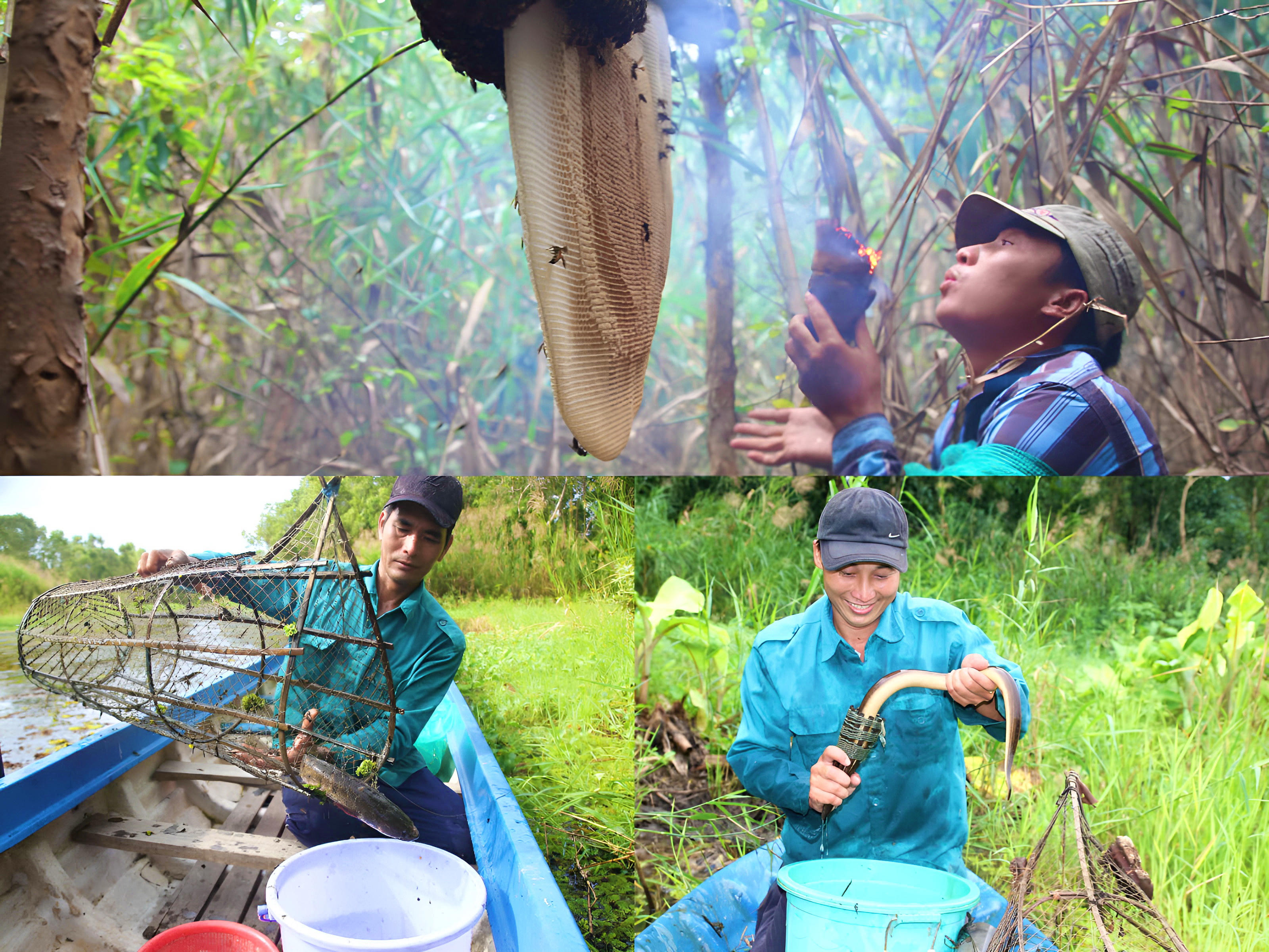 Du khách trải nghiệm đặt lờ bắt cá đồng, đặt trúm bắt lươn, đi lấy ong… tại điểm du lịch cộng đồng 10 Ngọt (ấp 4, xã Khánh Bình Tây Bắc, huyện Trần Văn Thời). |