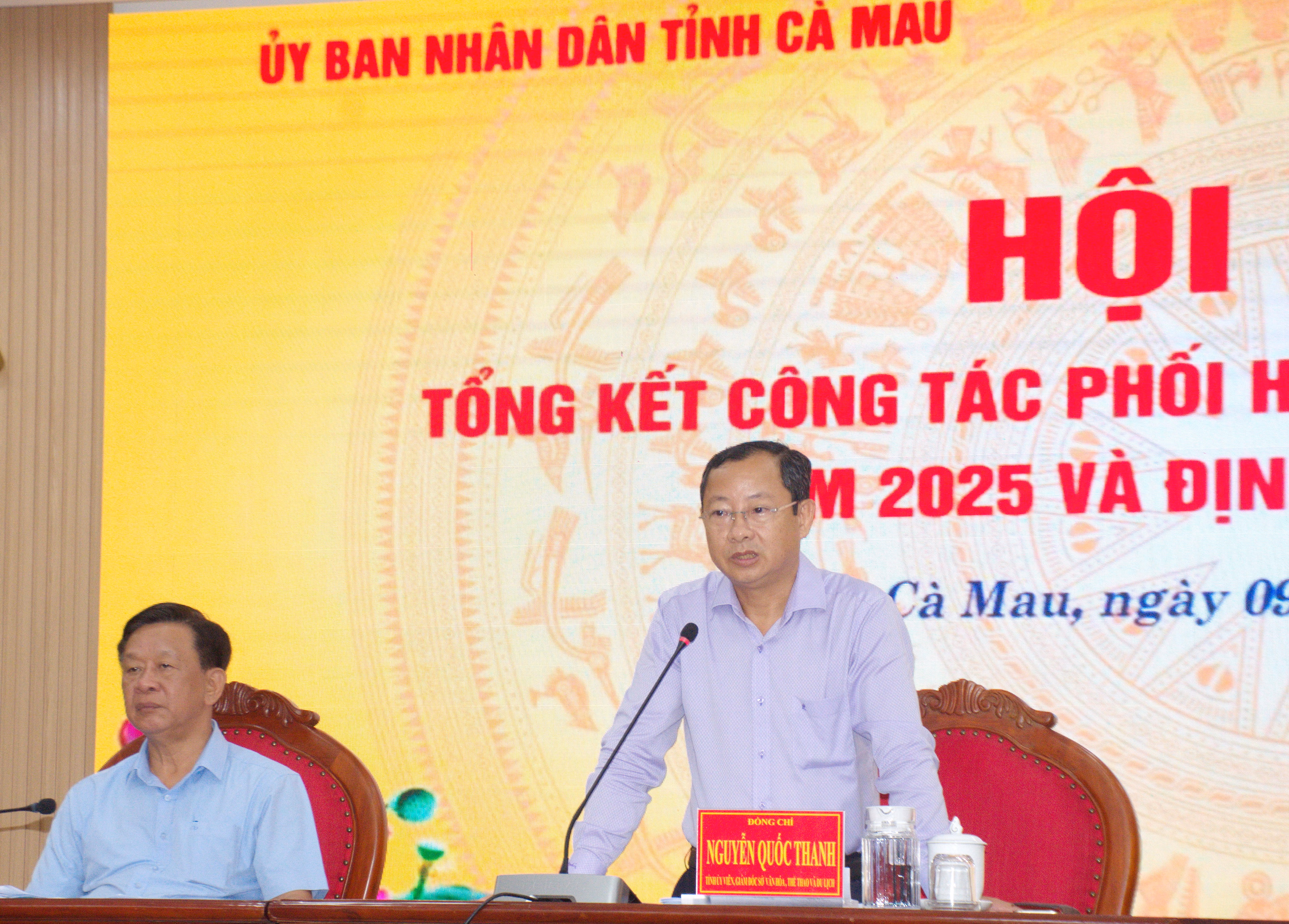 (PLVN) -Ngày 9/4, UBND tỉnh Cà Mau phối hợp Ban Tuyên giáo và Dân vận Tỉnh ủy tổ chức Hội nghị tổng kết công tác phối hợp thông tin, tuyên truyền năm 2025; đồng thời họp báo và giao ban báo chí quý I/2026. Ông Hồ Trung Việt - Ủy viên Ban Thường vụ, Trưởng Ban Tuyên giáo và Dân vận Tỉnh ủy và ông Nguyễn Quốc Thanh - Tỉnh ủy viên, Giám đốc Sở Văn hóa, Thể thao và Du lịch tỉnh Cà Mau đồng chủ trì hội nghị.
