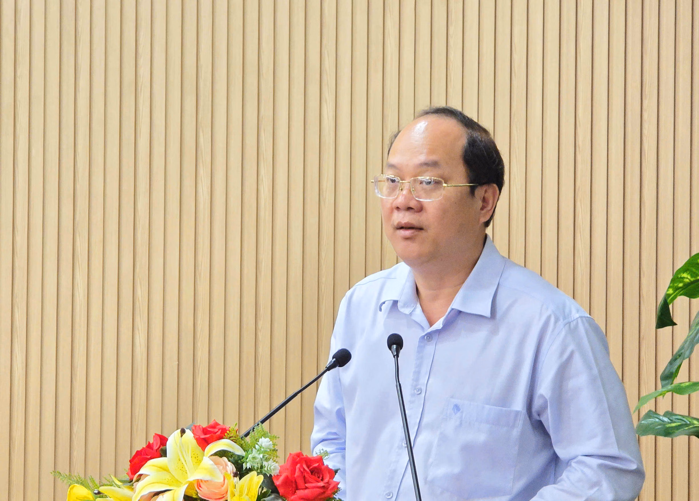 Ông Lâm Văn Bi – Ủy viên BTV Tỉnh ủy, Phó Chủ tịch UBND tỉnh Cà Mau, trình bày thông qua Kế hoạch triển khai thực hiện Nghị quyết Đại hội XIV của Đảng và nội dung điều chỉnh Quy hoạch tỉnh, phù hợp với định hướng phát triển mới sau hợp nhất.