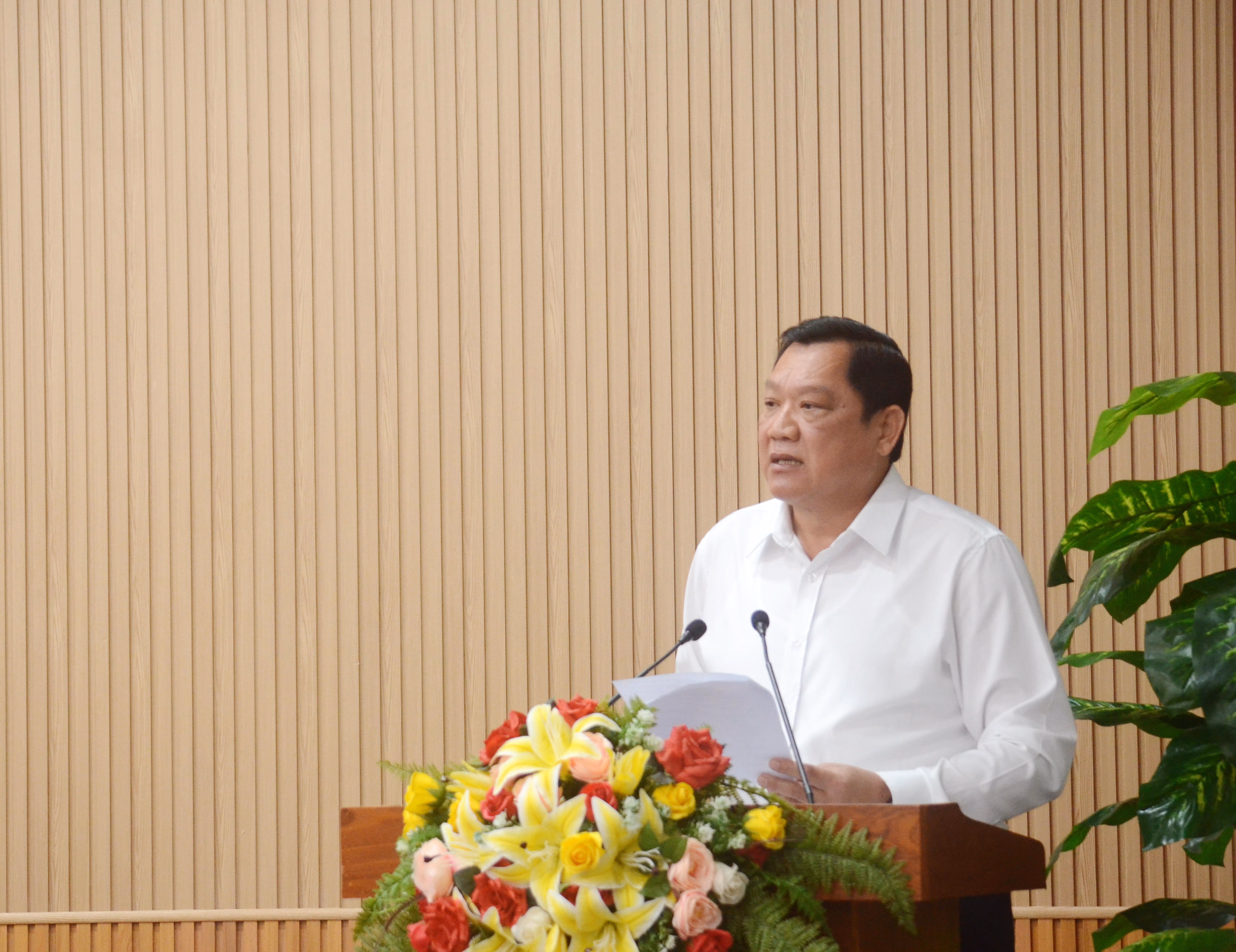 Ông Huỳnh Quốc Việt – Phó Bí thư Thường trực Tỉnh ủy Cà Mau phát biểu quán triệt, định hướng và gợi mở một số nội dung trọng tâm trong quá trình triển khai Chương trình hành động.