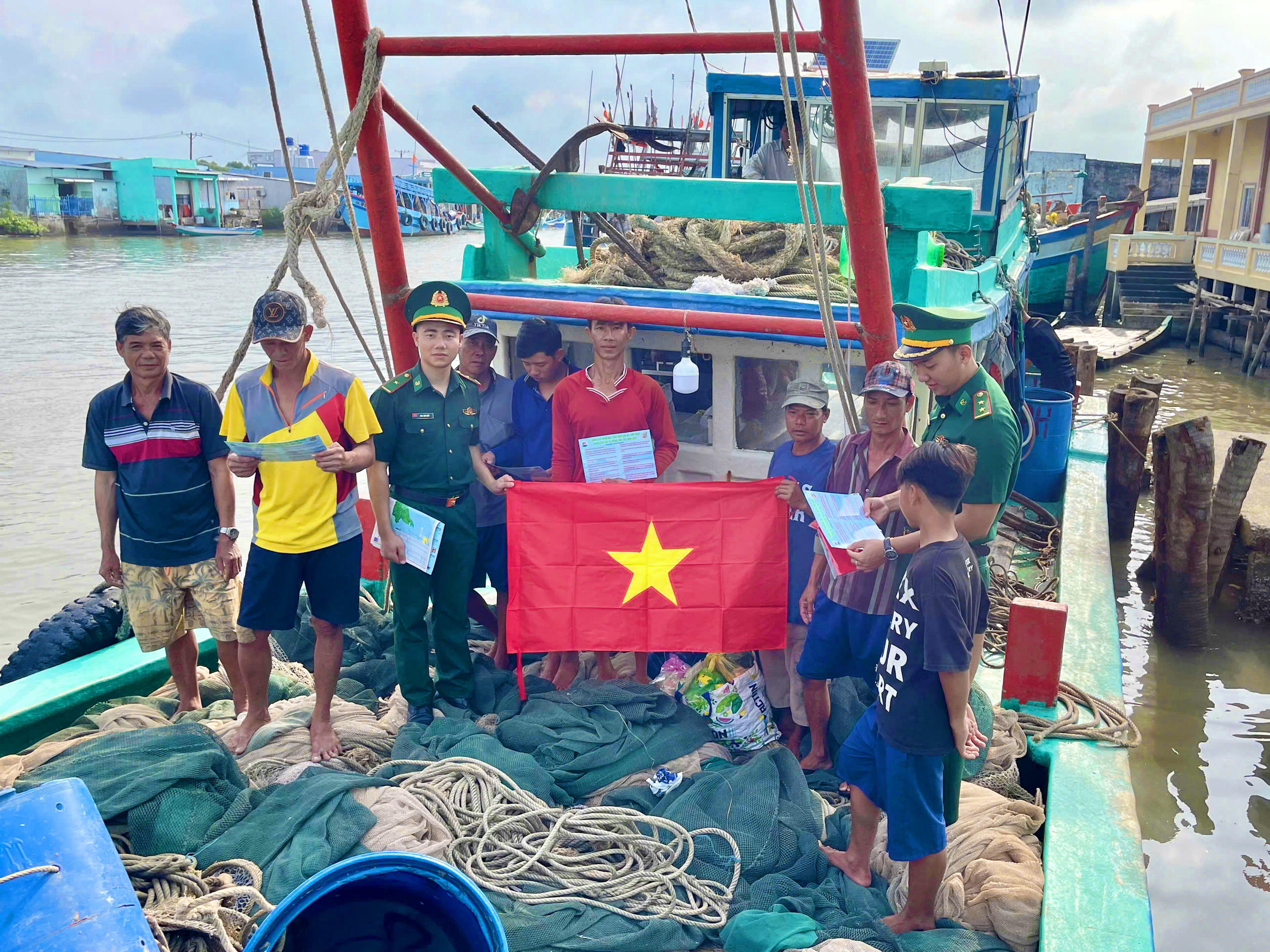 Đồng thời, đơn vị tuyên truyền cấp phát và hướng dẫn cho chủ tàu cá, thuyền trưởng nội dung thư ngỏ của Chủ tịch UBND tỉnh về việc kêu gọi tích cực hưởng ứng chống khai thác hải sản bất hợp pháp, không báo cáo và không theo quy định.