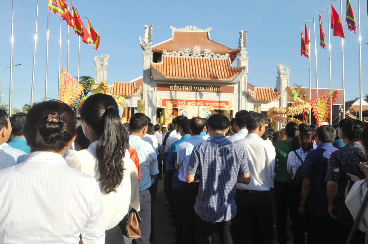 Tham dự Lễ, có lãnh đạo tỉnh; Đại diện lãnh đạo các Sở, ban, ngành cấp tỉnh; lãnh đạo các huyện, thành phố; chính quyền các địa phương và đông đảo nhân dân trong và ngoài tỉnh về tham dự và thành kính trang nghiêm dâng hoa, dâng hương, dâng lễ vật (bánh dân gian truyền thống tại địa phương) để tưởng nhớ công ơn Vua Hùng bậc tiền nhân có công dựng nước giữ nước.