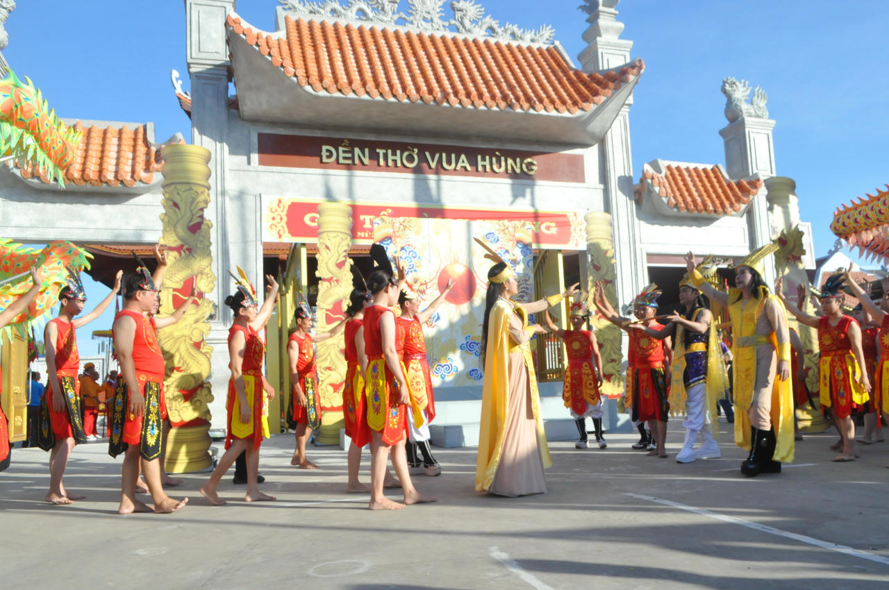 Hoạt cảnh tưởng nhớ công lao các vị Vua Hùng do Đoàn Cải lương Hương Tràm trình diễn. |