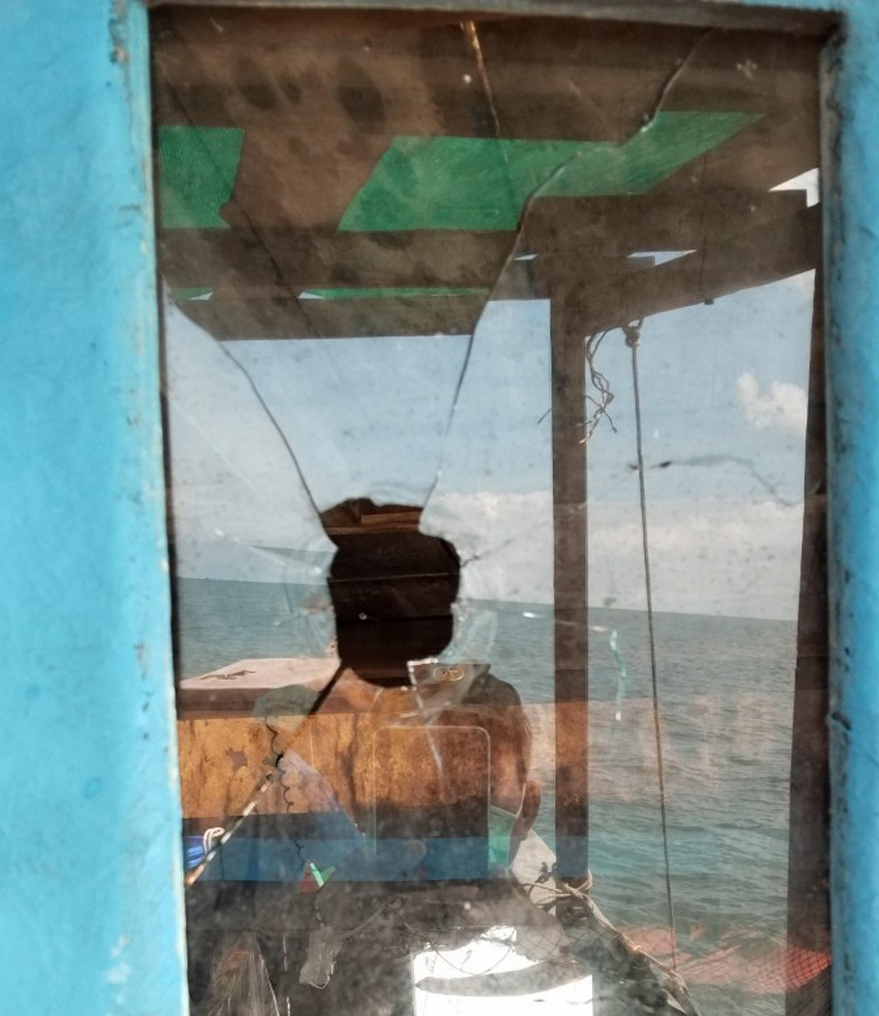 Vỏ tàu cá bị thủng và kính tàu cá bị bắn thủng do tác động từ việc dùng vũ khí thô sơ, dụng cụ tự chế tấn công nhau giữa các phương tiện. |