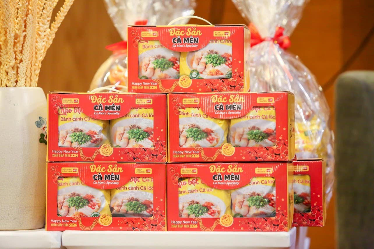 Tháng 6/2022, ý tưởng bánh canh cá lóc Quảng Trị đóng gói ra đời. Sau thời gian thử nghiệm, Cà Mèn tung sản phẩm này ra thị trường với trọng lượng 230g. Gói gồm cá lóc phi lê nguyên miếng, sợi bột gạo, nước sốt cô đặc, tương ném sa tế, hành lá sấy khô được cấp đông. Ưu điểm của sản phẩm này chính là việc tiện dụng, khi người dùng chỉ cần 5 phút hâm nóng đã có thể dùng.