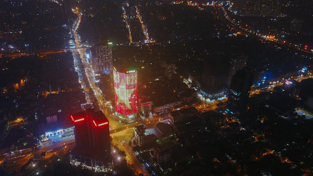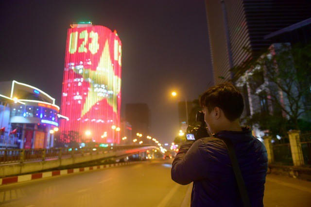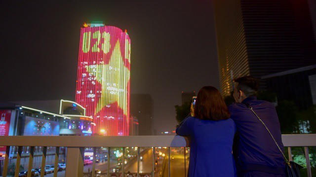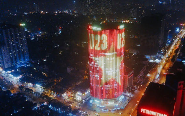 Cả một tòa cao ốc rực sáng quốc kỳ cổ vũ U23 Việt Nam