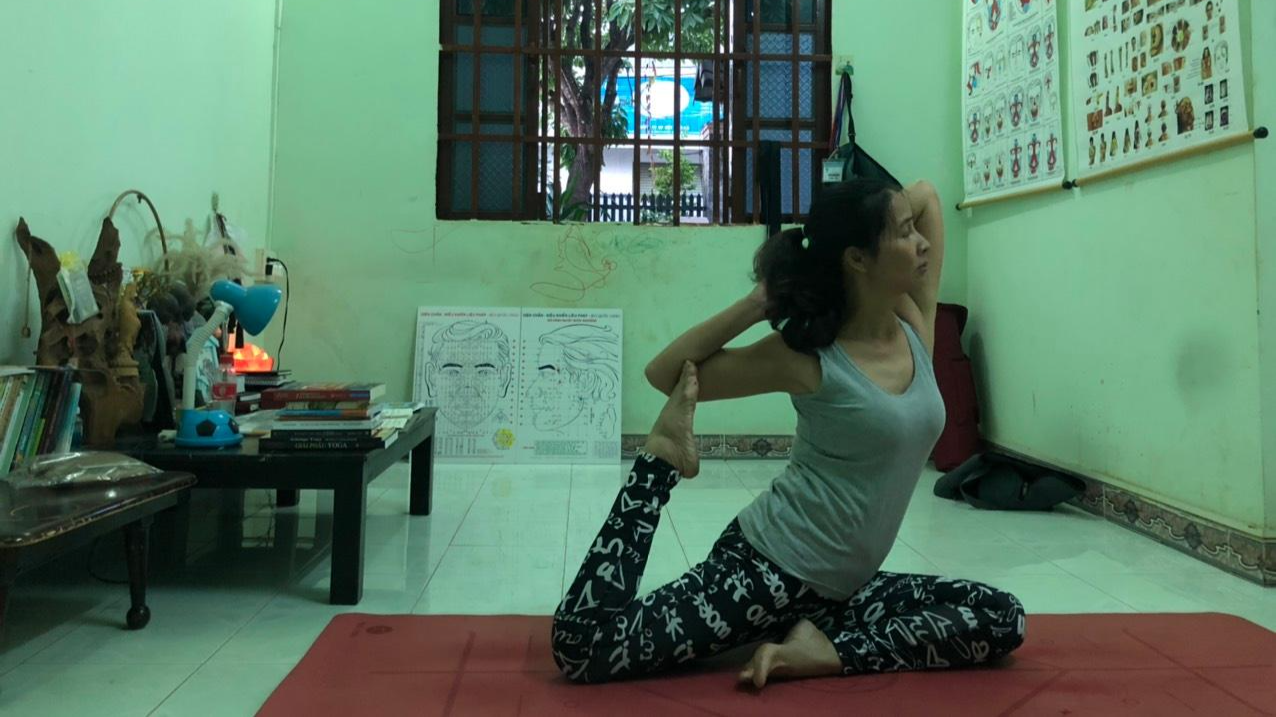 Chị Huyền rèn luyện sức khoẻ bằng cách tập Yoga tại nhà. |