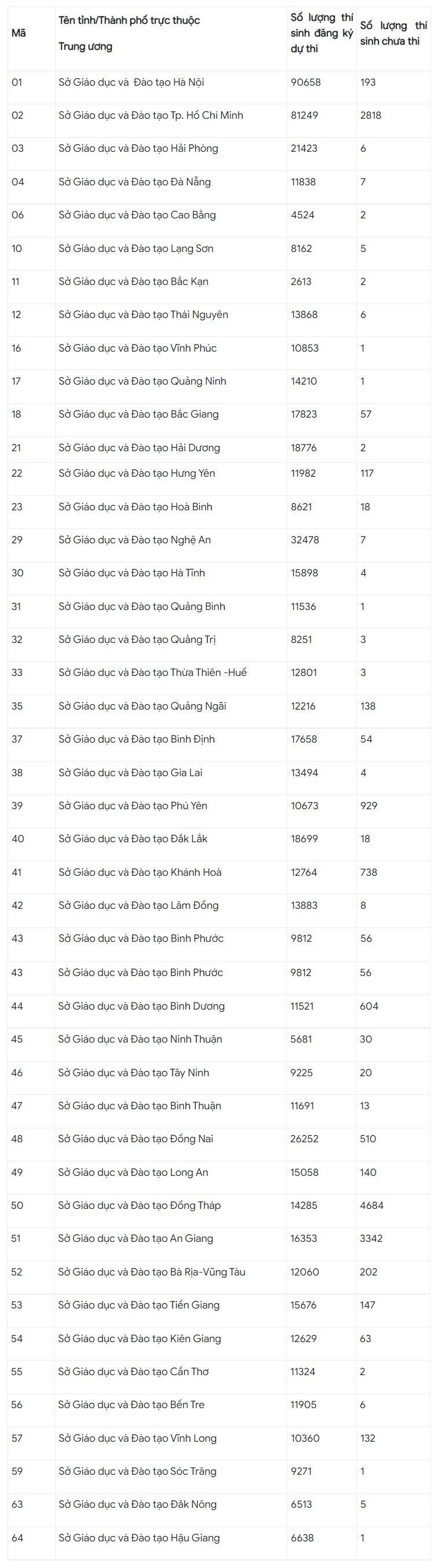 Số lượng thí sinh không tham dự kỳ thi tốt nghiệp trung học phổ thông năm 2021 đợt 2 của từng tỉnh, thành phố cụ thể như sau: