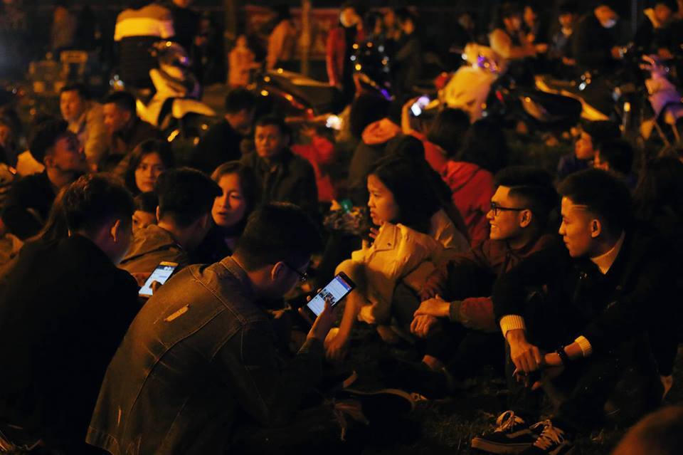 | Người dân tập trung tại điểm bắn pháo hoa Hồ Ngọc Khánh. Ảnh Quốc Anh |