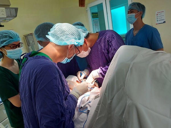 Ca phẫu thuật diễn ra trong 2 giờ đồng hồ. Ekip đã phải sử dụng nhiều dụng cụ hỗ trợ để sắp xếp tư thế trên giường mổ sao cho bệnh nhân có thể chịu được, đồng thời phẫu thuật viên quan sát và tiếp cận được thuận lợi nhất với vị trí cần phẫu thuật.