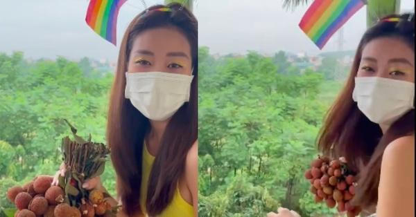 Để cho những ngày cách ly bớt nhàm chán, hoa hậu có nhiều hoạt động thú vị, điển hình như việc kêu gọi mọi người ủng hộ trái vải cho nông dân. (Ảnh: Chụp màn hình) |