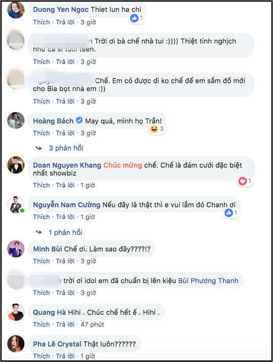 Trong khi đó, ca sĩ Phương Thanh vẫn chưa lên tiếng xác nhận trực tiếp thông tin mình chia sẻ trên trang cá nhân với truyền thông. Dù vậy, trong phần tương tác với bạn bè, chị để lại lời nhắn: "Đây chỉ là tiệc kín của hai bên gia đình nên chưa mời bạn bè".